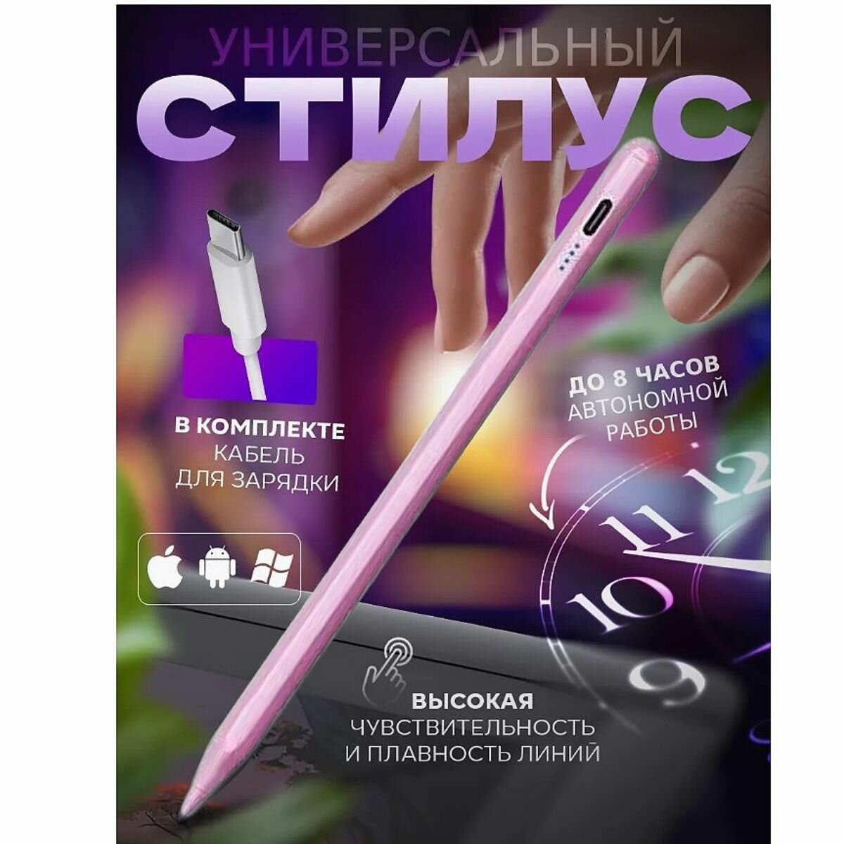 Активный аккумуляторный универсальный стилус для смартфона и планшета розовый информация: