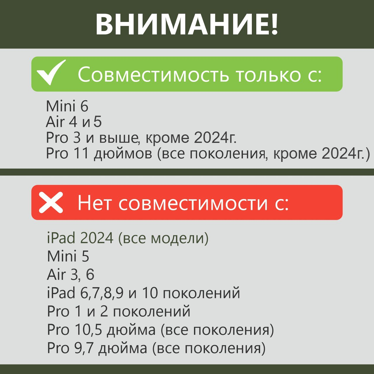 | Совместимость | iPad 2018 и выше (ВНИМАНИЕ: есть ограничение по моделям, полный список в описании) |