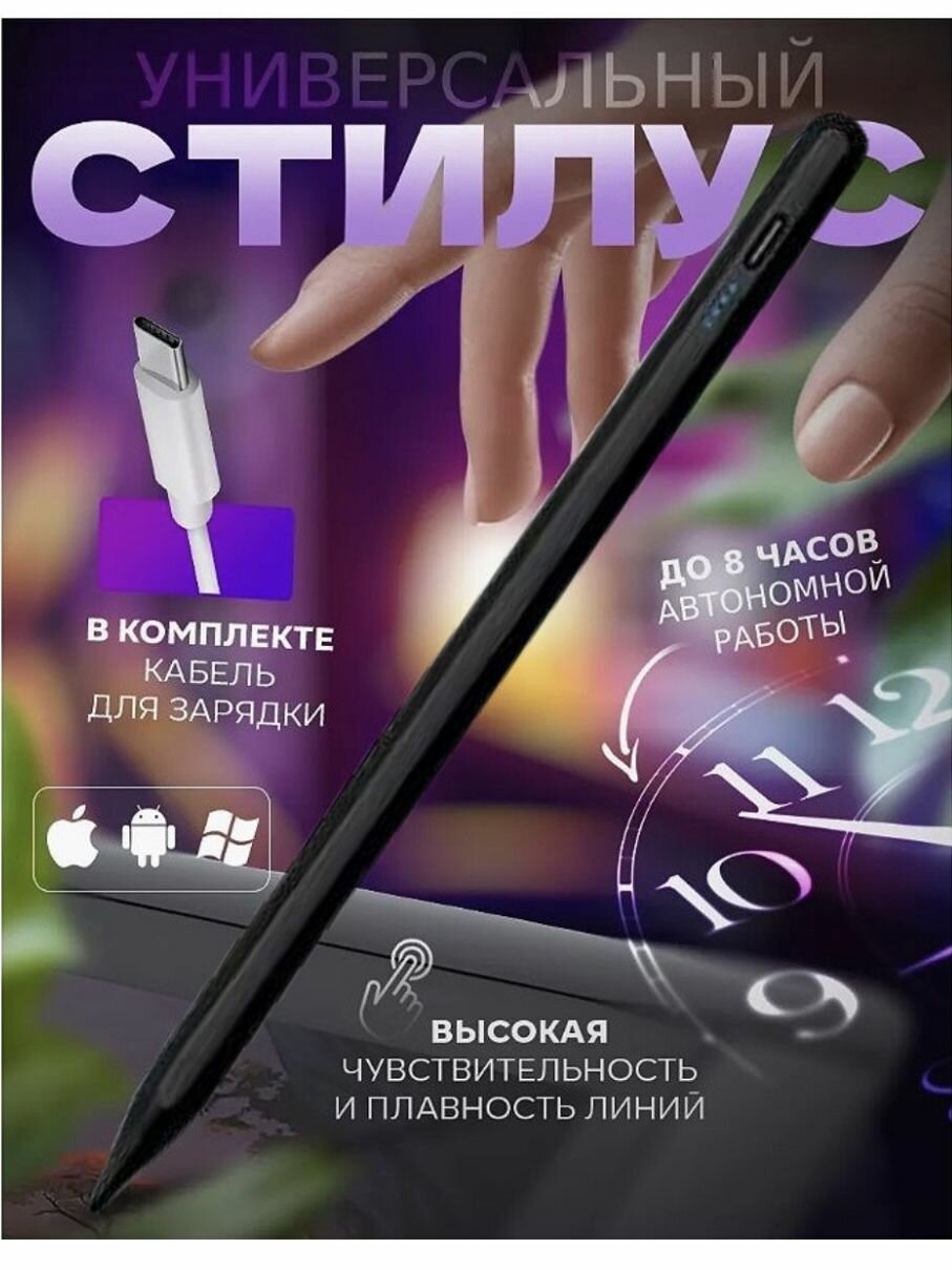 Активный универсальный стилус для смартфона, планшета, сенсорного экрана ноутбука. черный. информация: