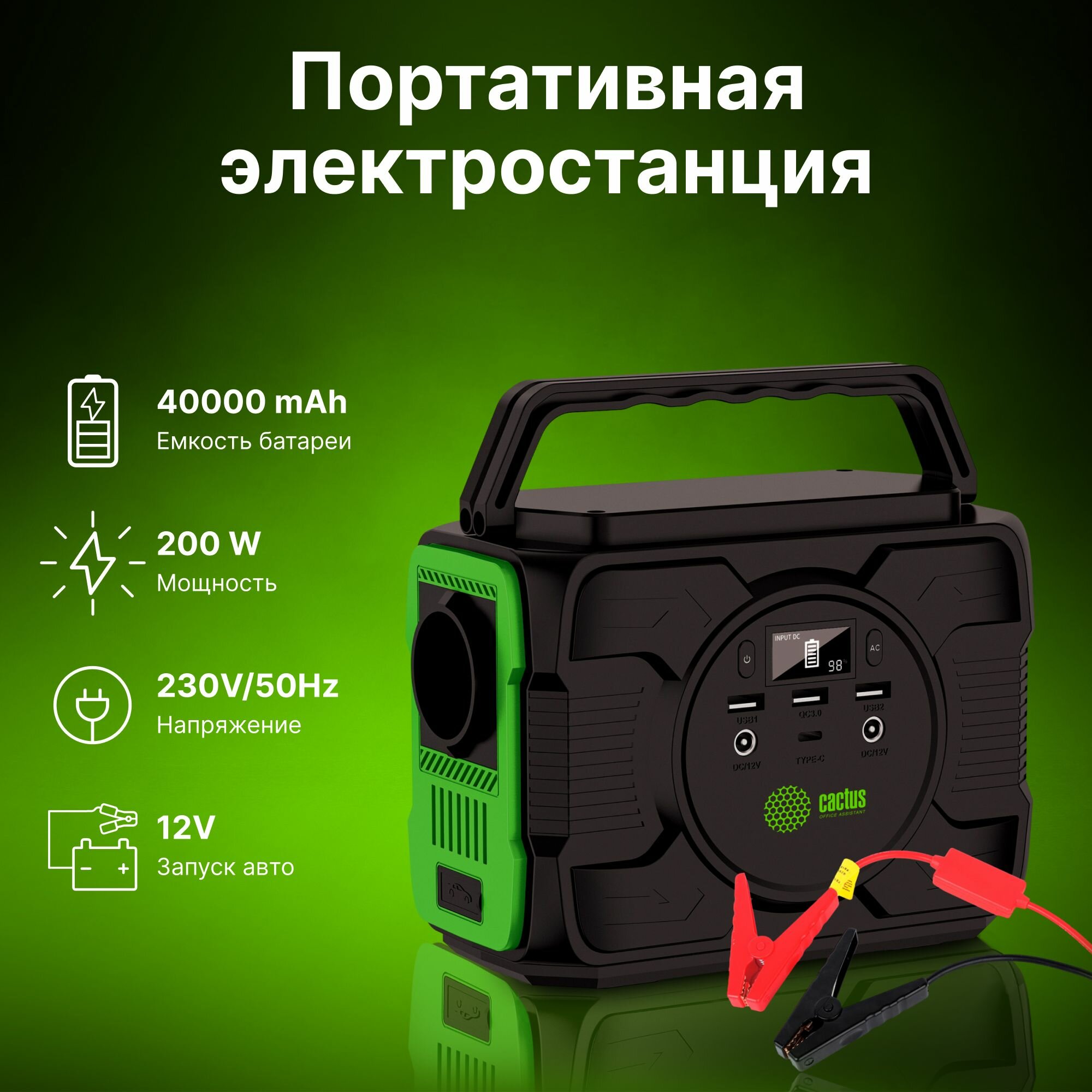 Портативная электростанция / внешний аккумулятор / ПЗУ 40000 мАч с розеткой 220V Cactus CS-PCS144-EC5 информация: