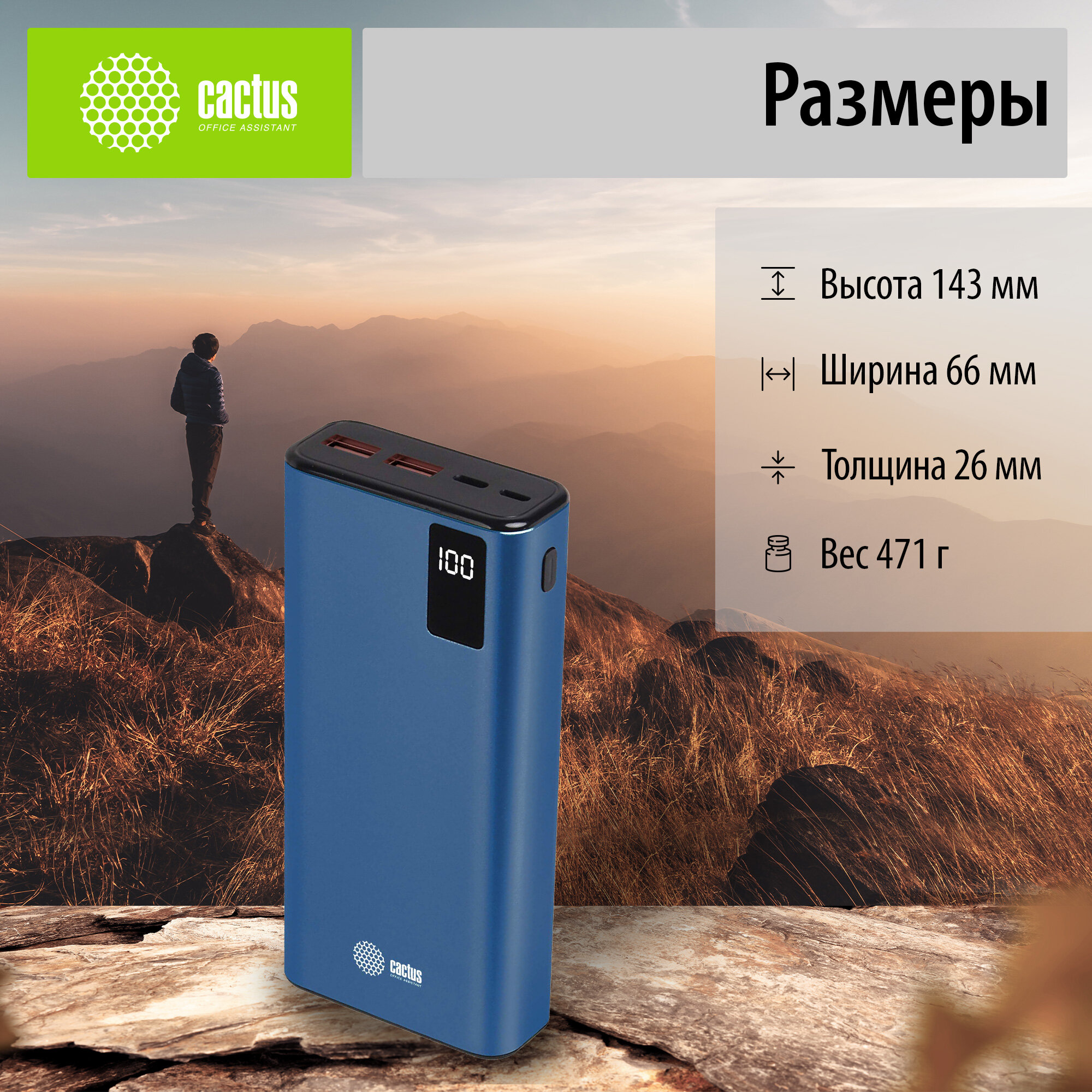 Мобильный аккумулятор CACTUS CS-PBFSYT-20000 синий