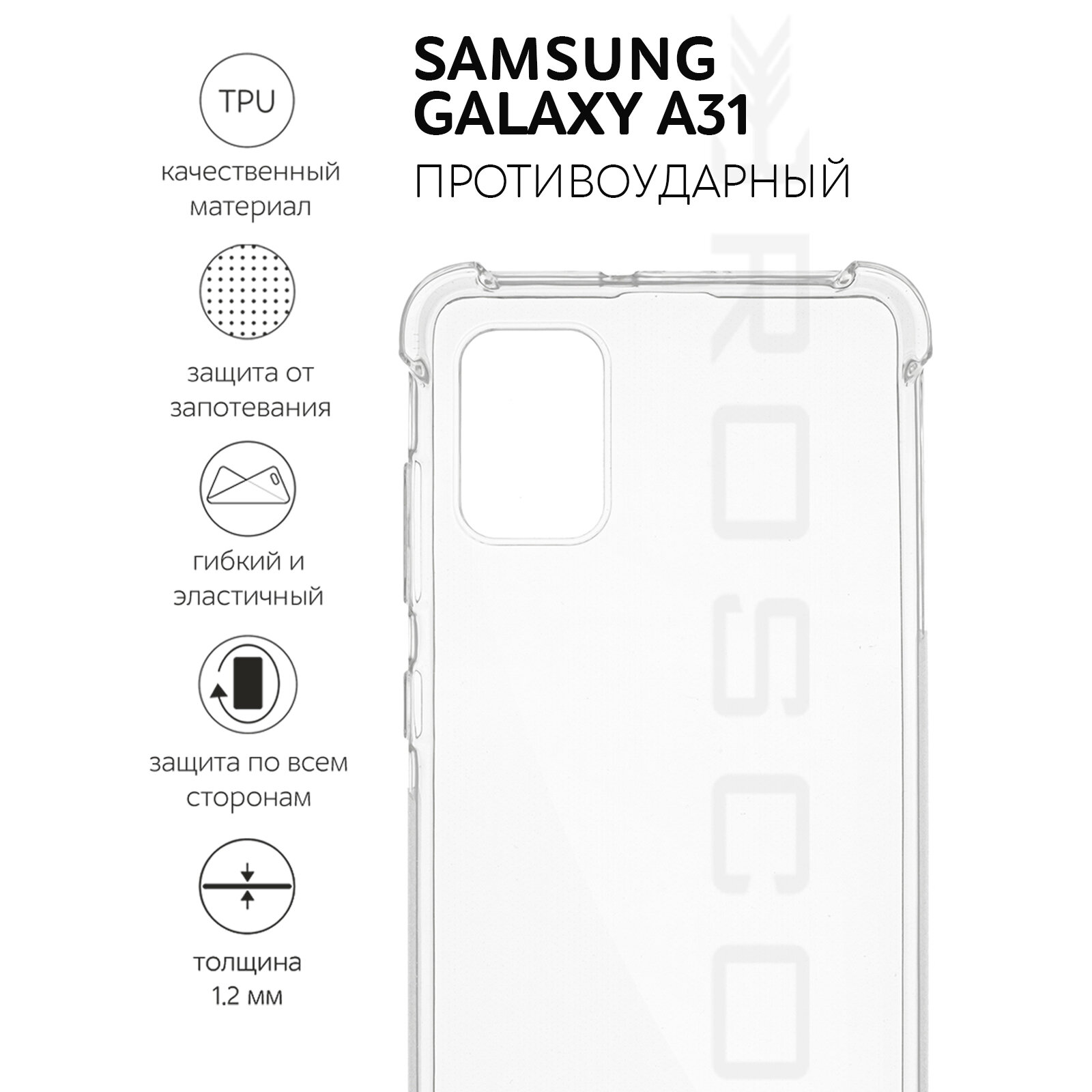 Противоударный чехол ROSCO для Samsung Galaxy A31 (Самсунг Галакси А31), бортиком (защита) блока камер, силиконовый чехол, прозрачный информация: