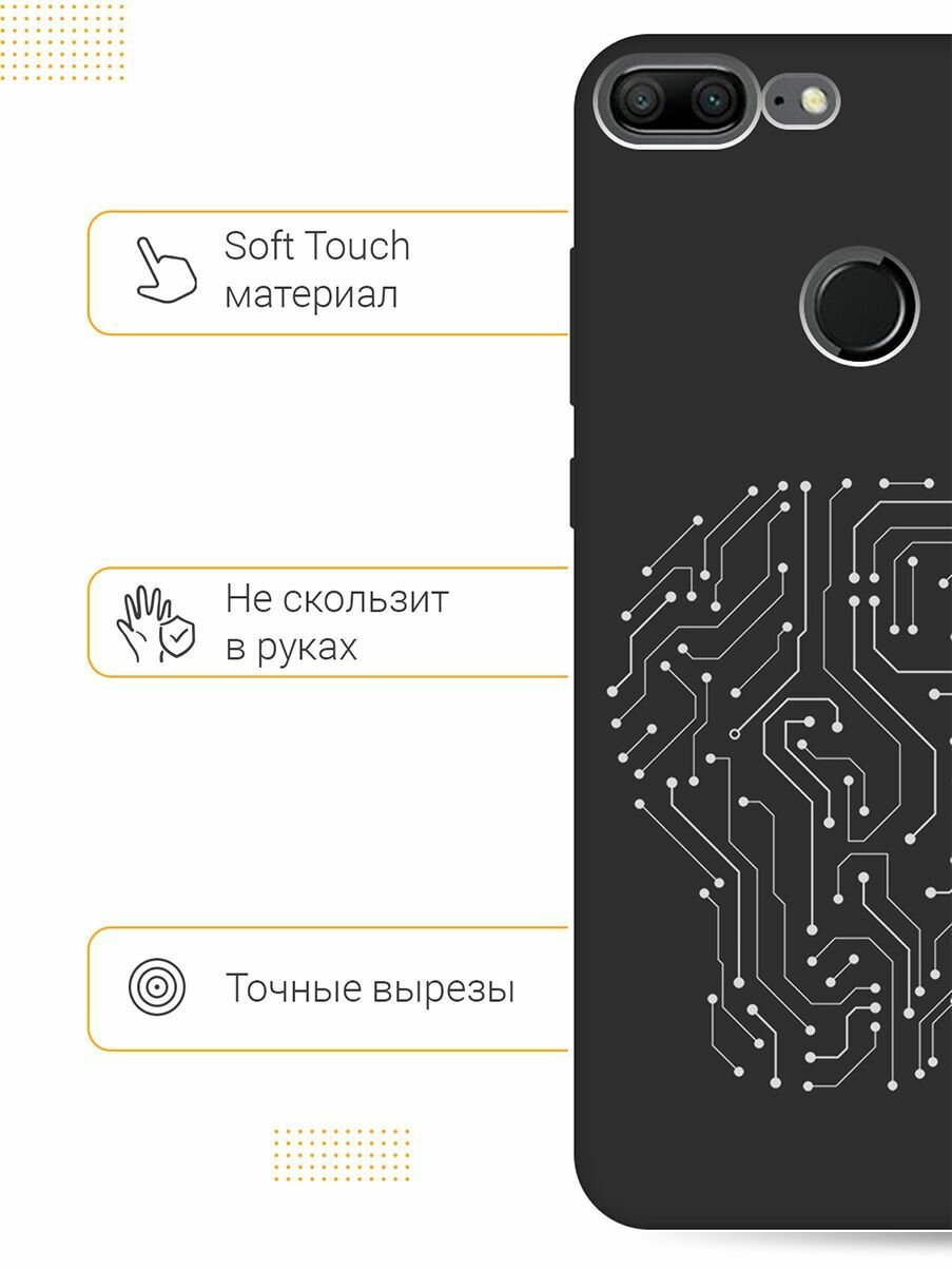 Матовый Soft Touch силиконовый чехол на Honor 9 Lite, Хонор 9 Лайт с 3D принтом "Brain Off W" черный 513 ₽