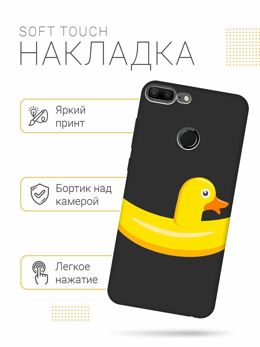 Отзывы на Матовый Soft Touch силиконовый чехол на Honor 9 Lite, Хонор 9 Лайт с 3D принтом "Duck Swim Ring" черный