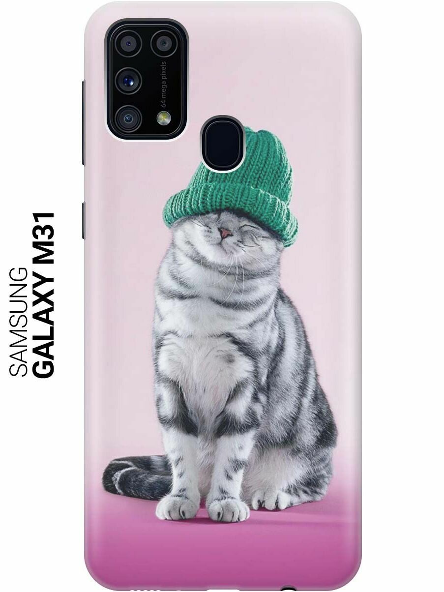 Отзывы на Ультратонкий силиконовый чехол-накладка для Samsung Galaxy M31 с принтом "Кот в зеленой шапке"