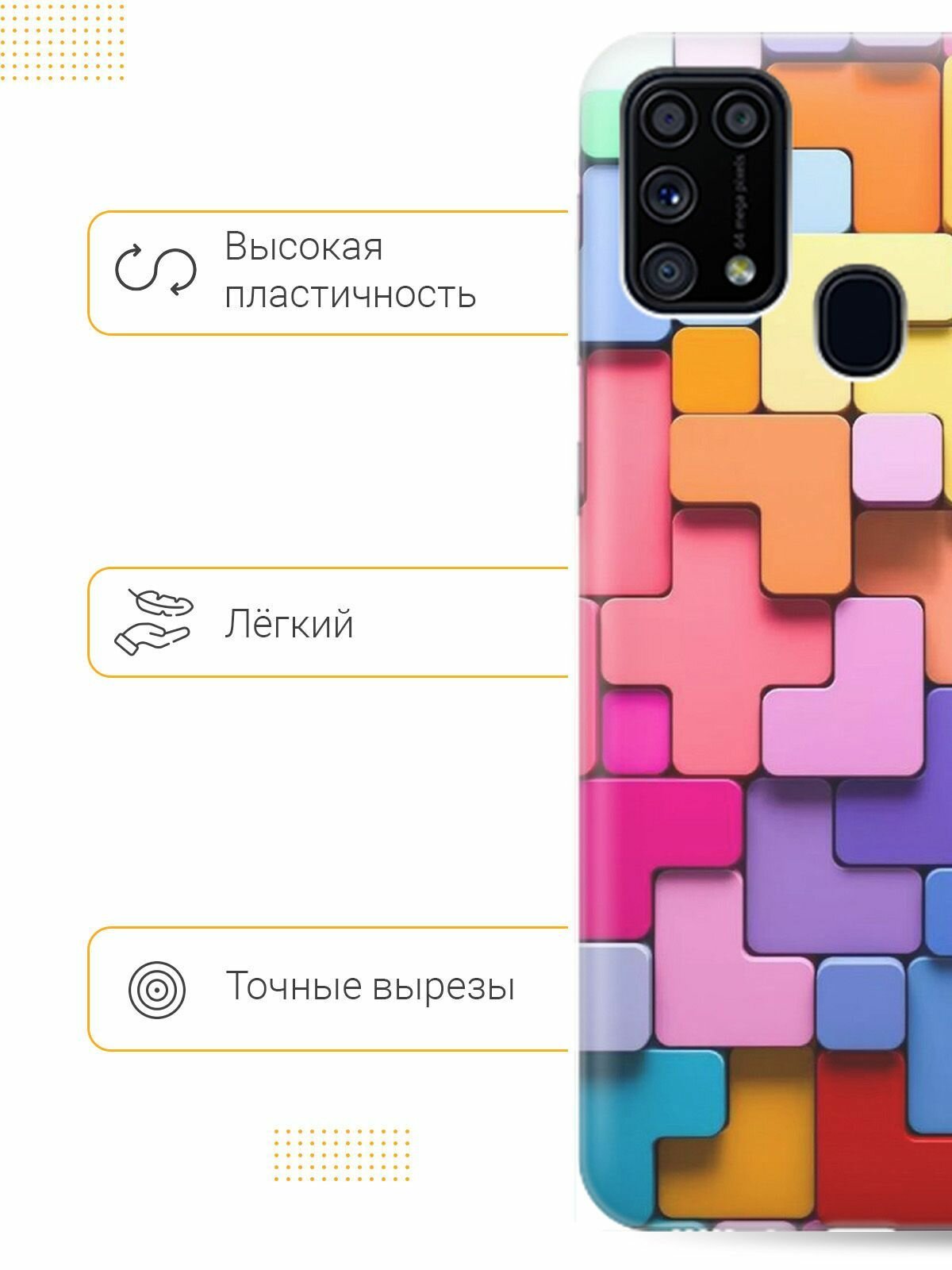 Отзывы на Ультратонкий силиконовый чехол-накладка для Samsung Galaxy M31 с принтом "Паттерн из блоков"