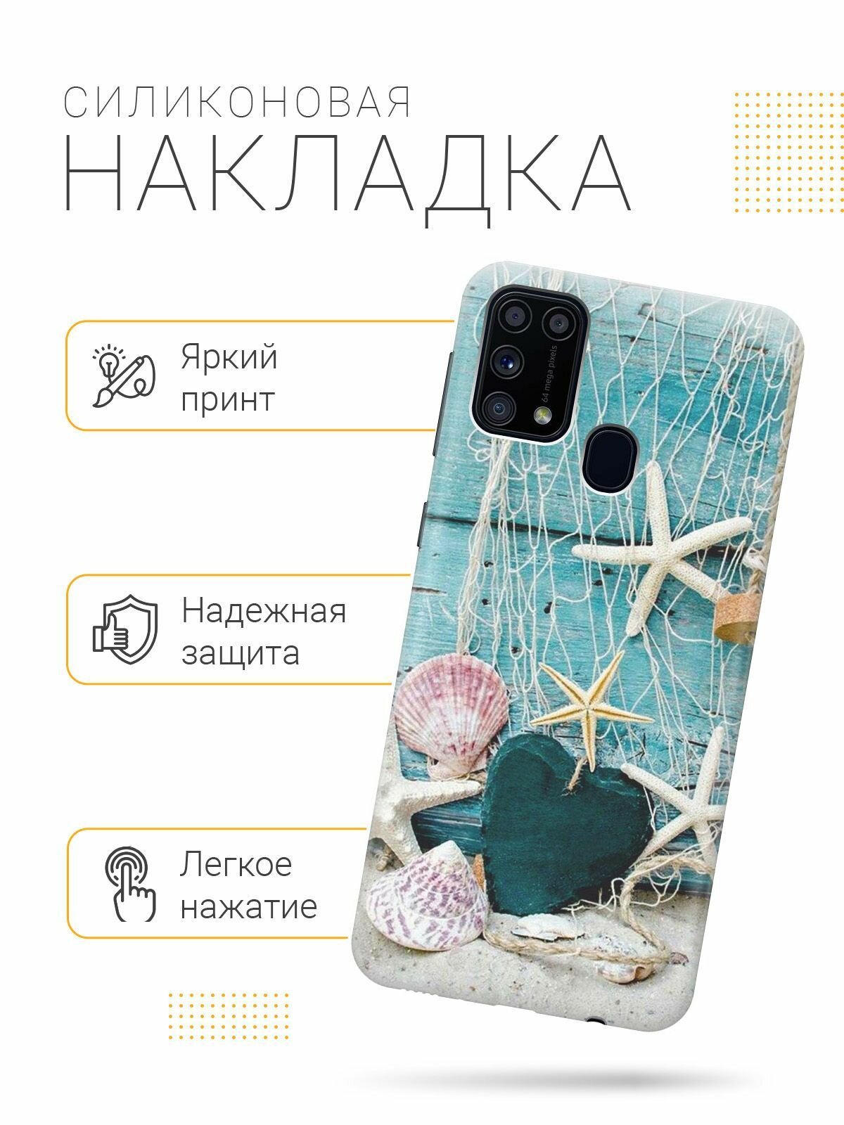 Ультратонкий силиконовый чехол-накладка для Samsung Galaxy M31 с принтом "Морские звезды" информация: