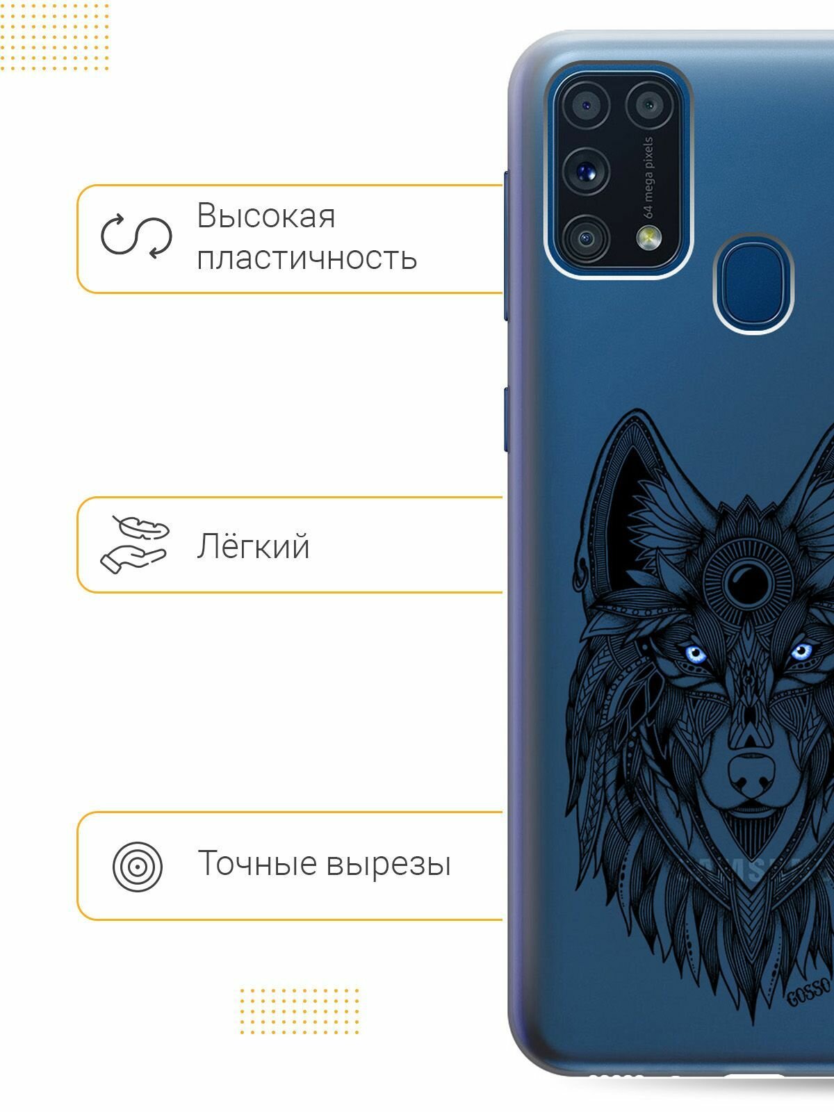 Ультратонкий силиконовый чехол-накладка для Samsung Galaxy M31 с 3D принтом "Grand Wolf" информация: