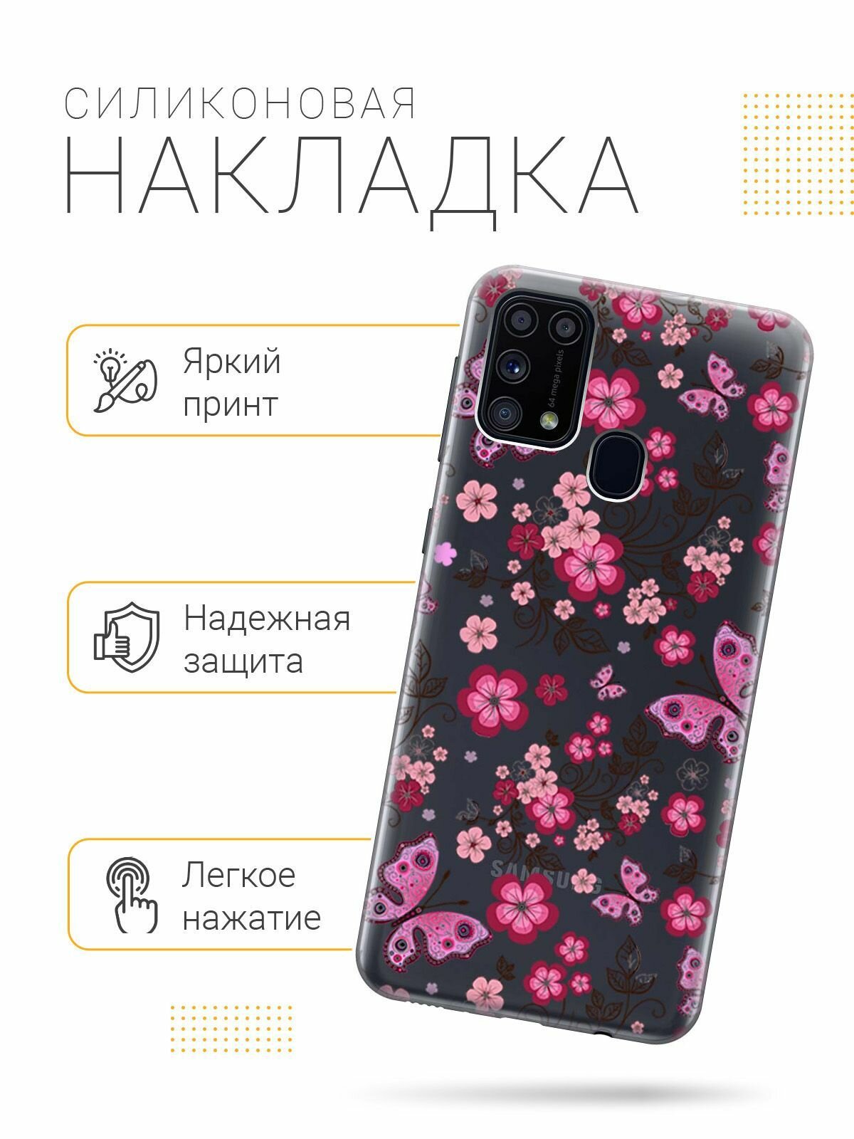 Отзывы на Ультратонкий силиконовый чехол-накладка для Samsung Galaxy M31 с 3D принтом "Butterflies and Flowers"