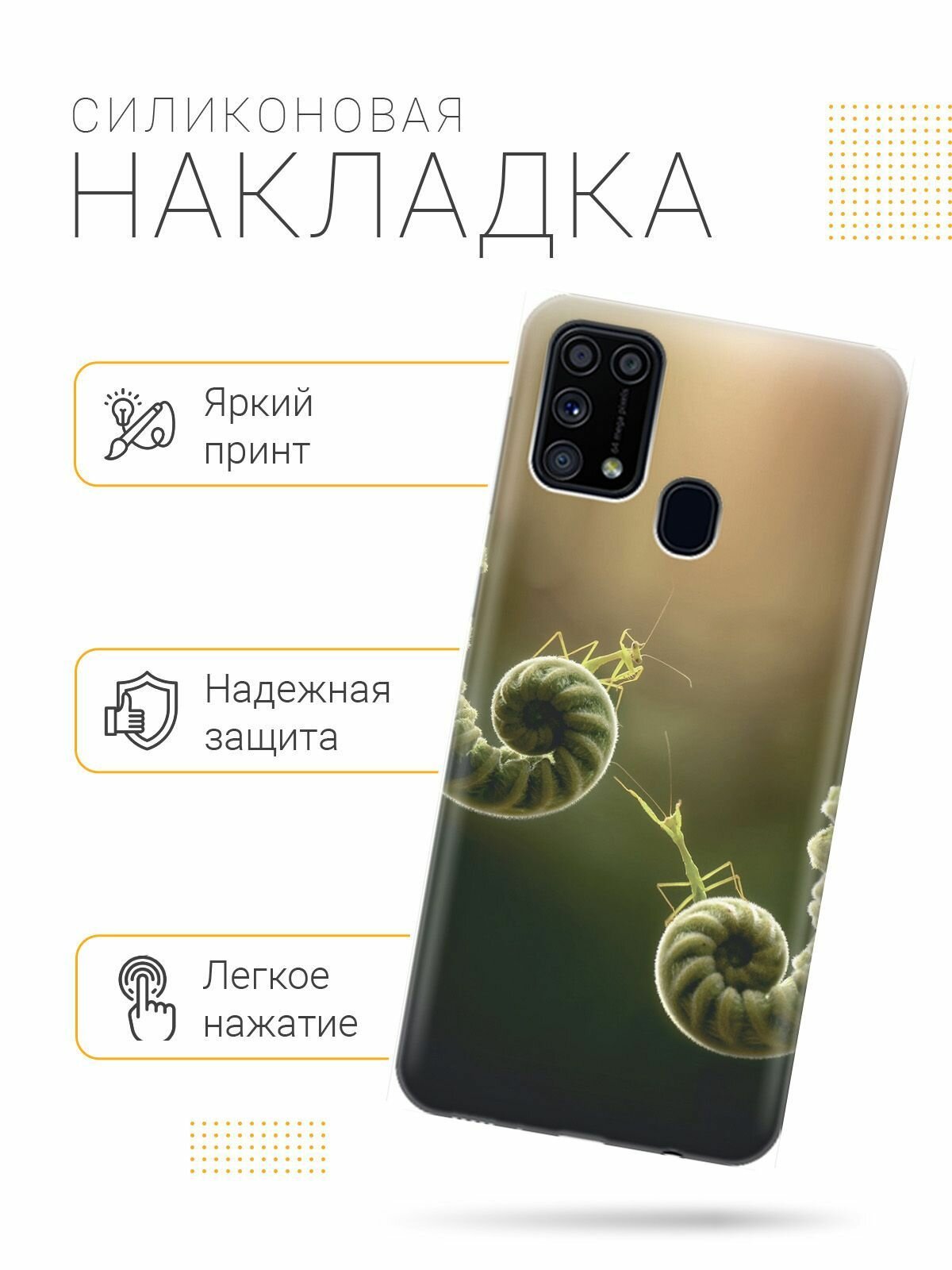 Отзывы на Ультратонкий силиконовый чехол-накладка для Samsung Galaxy M31 с принтом "Пара богомолов"