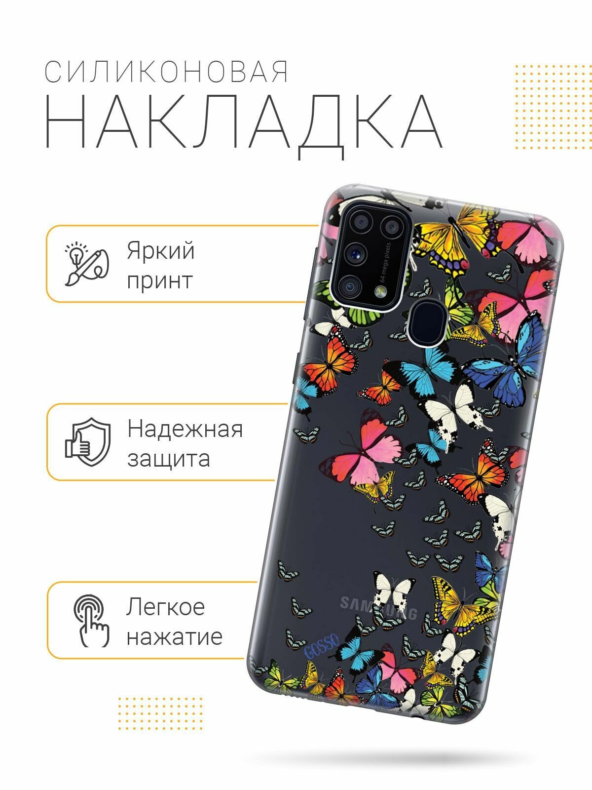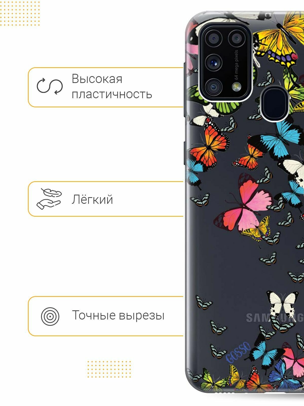 Отзывы на Ультратонкий силиконовый чехол-накладка для Samsung Galaxy M31 с 3D принтом "Magic Butterflies"
