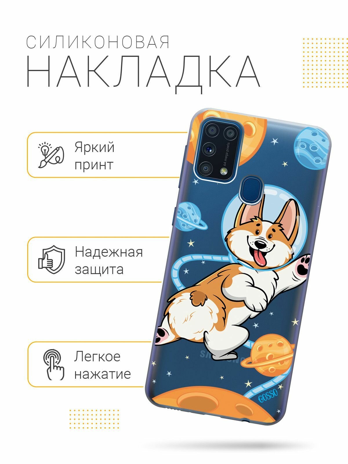 Силиконовый чехол на Samsung Galaxy M31, Самсунг М31 с 3D принтом "CosmoCorgi" прозрачный информация: