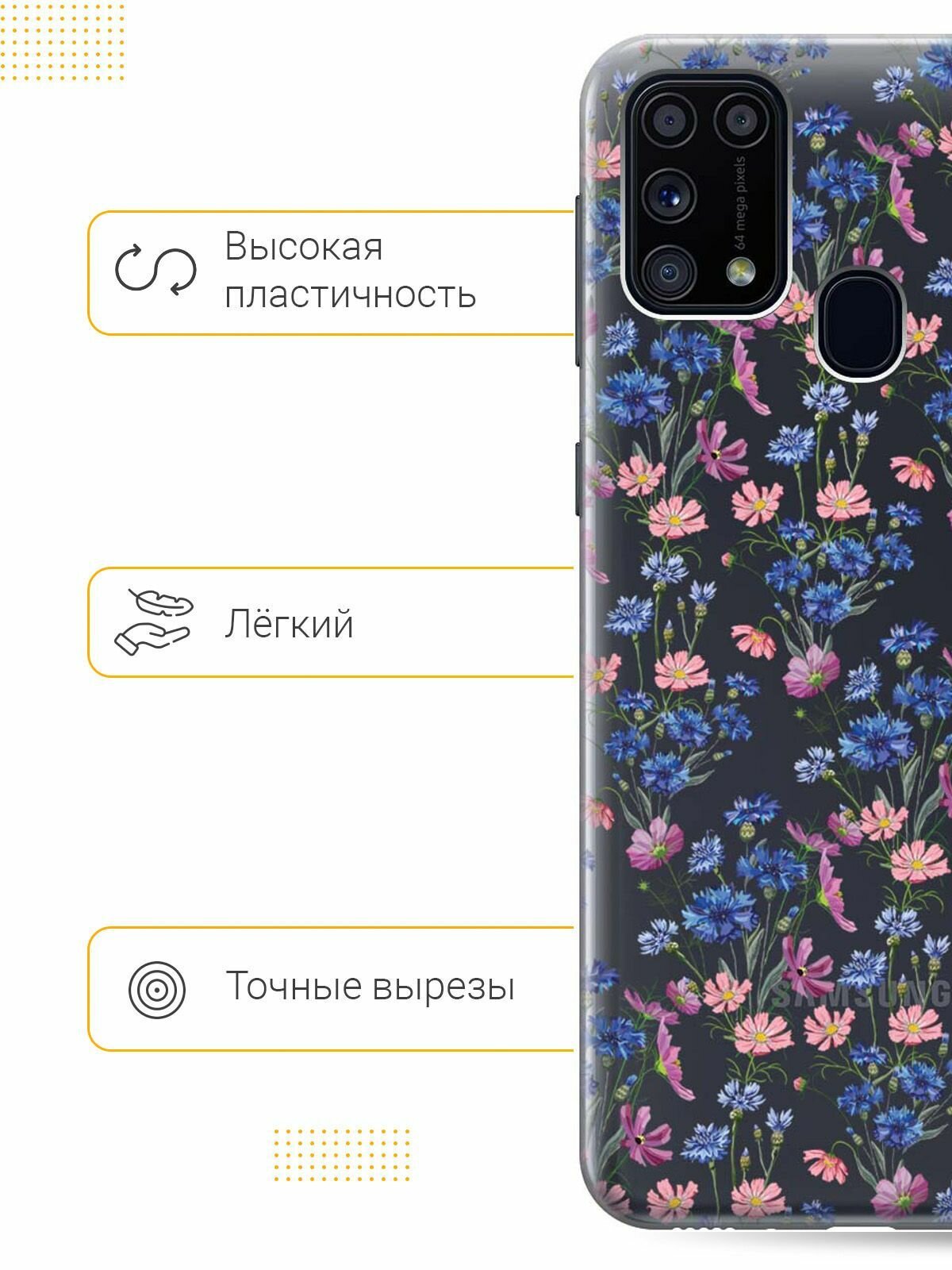 Отзывы на Ультратонкий силиконовый чехол-накладка для Samsung Galaxy M31 с 3D принтом "Lovely Cornflowers"