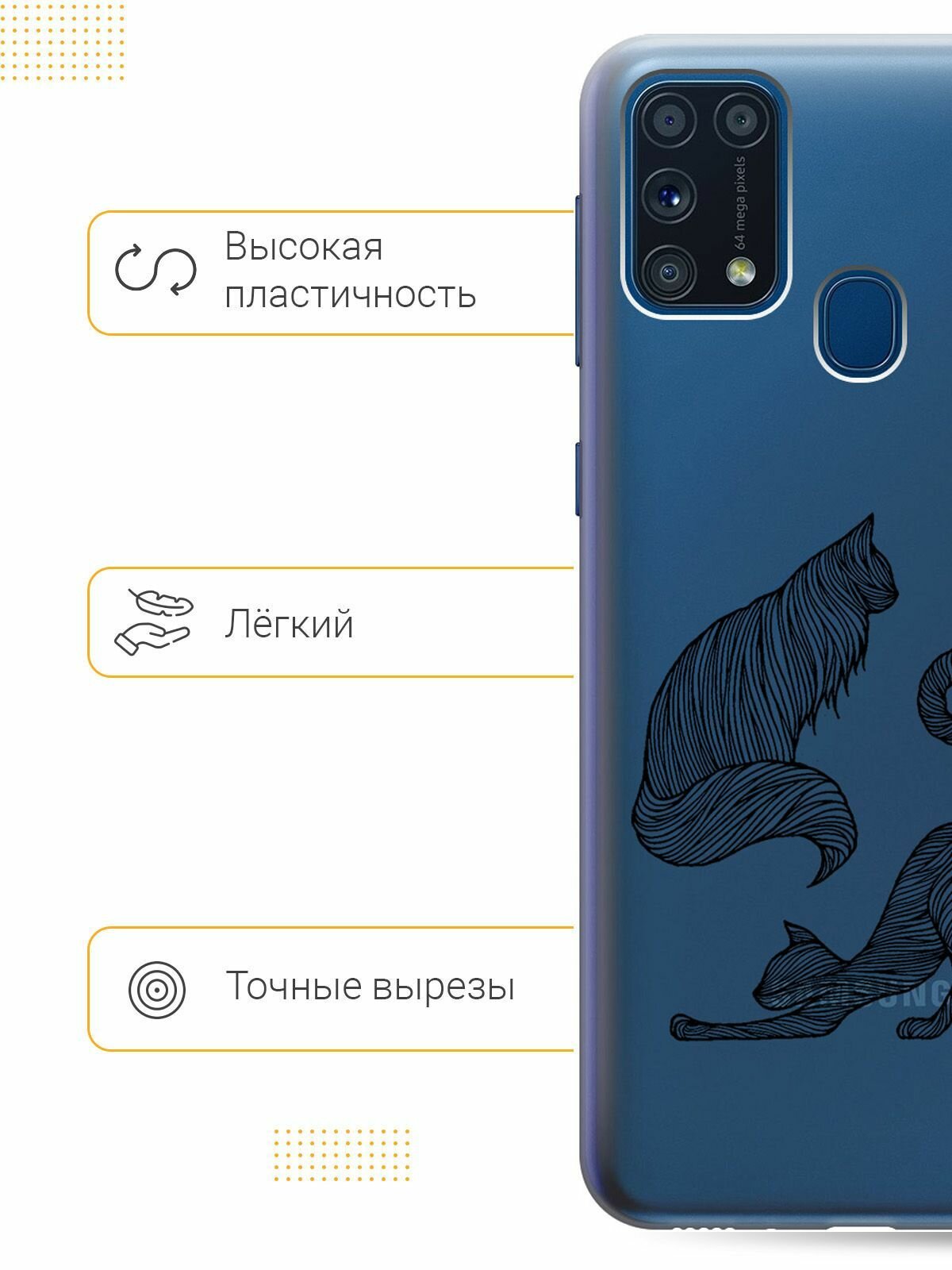 Ультратонкий силиконовый чехол-накладка для Samsung Galaxy M31 с 3D принтом "Funny Foxes" 474 ₽