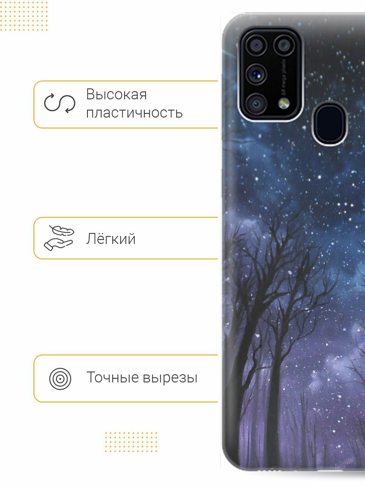 Ультратонкий силиконовый чехол-накладка для Samsung Galaxy M31 с принтом "Ночной лес" информация: