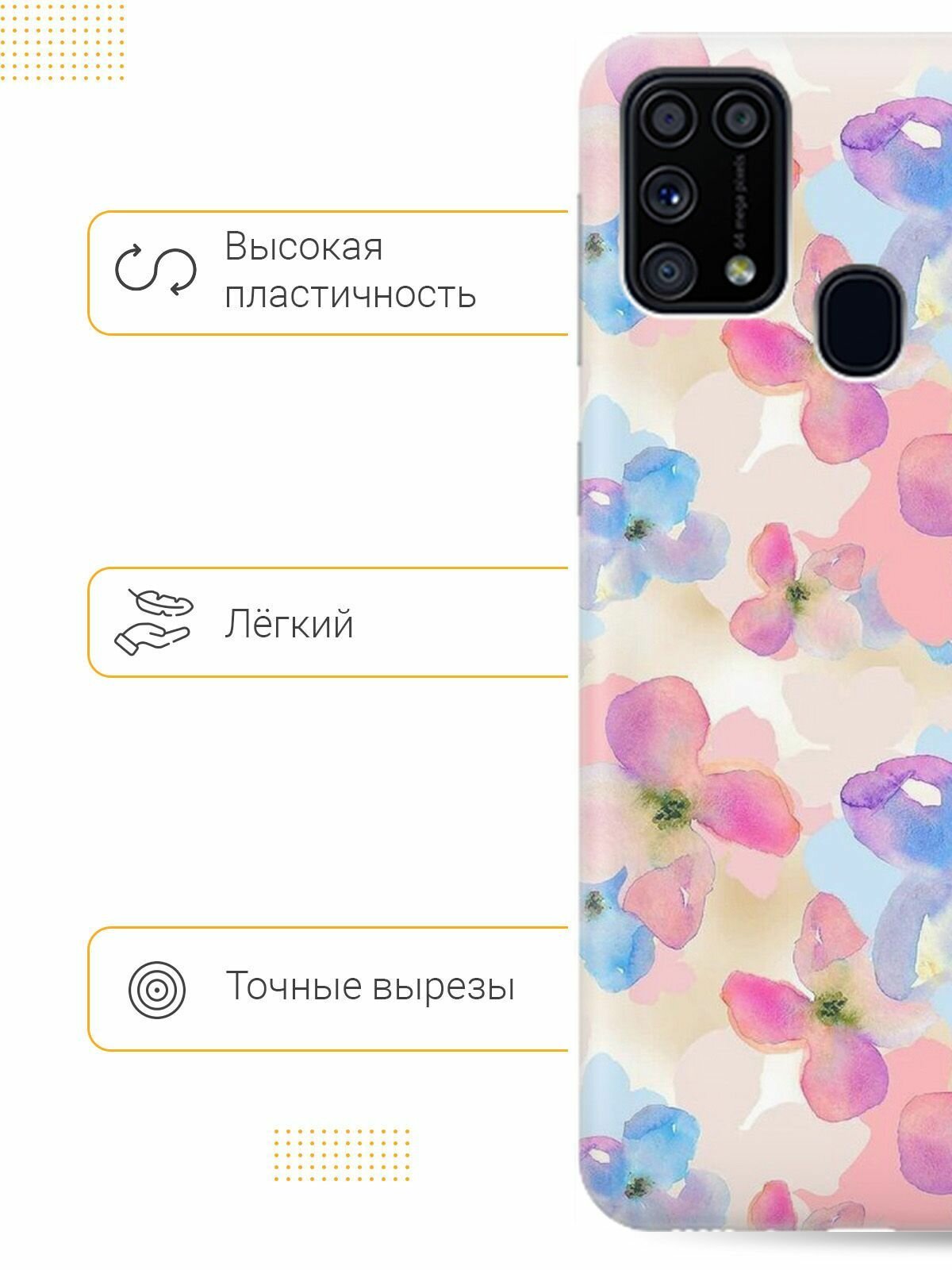 Ультратонкий силиконовый чехол-накладка для Samsung Galaxy M31 с принтом "Акварельные цветы" 459 ₽
