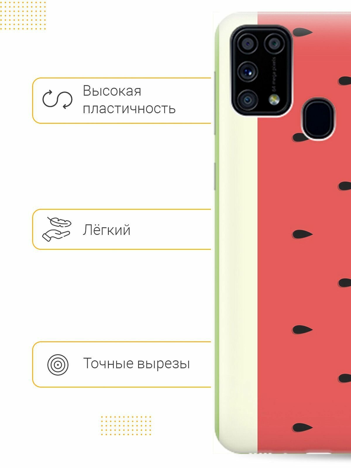Отзывы на Силиконовый чехол на Samsung Galaxy M31, Самсунг М31 с принтом "Арбуз"
