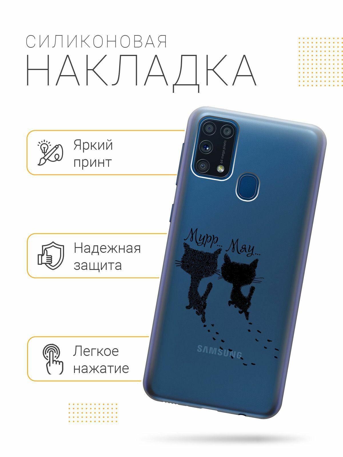 Ультратонкий силиконовый чехол-накладка для Samsung Galaxy M31 с 3D принтом "Kittens and trails" информация:
