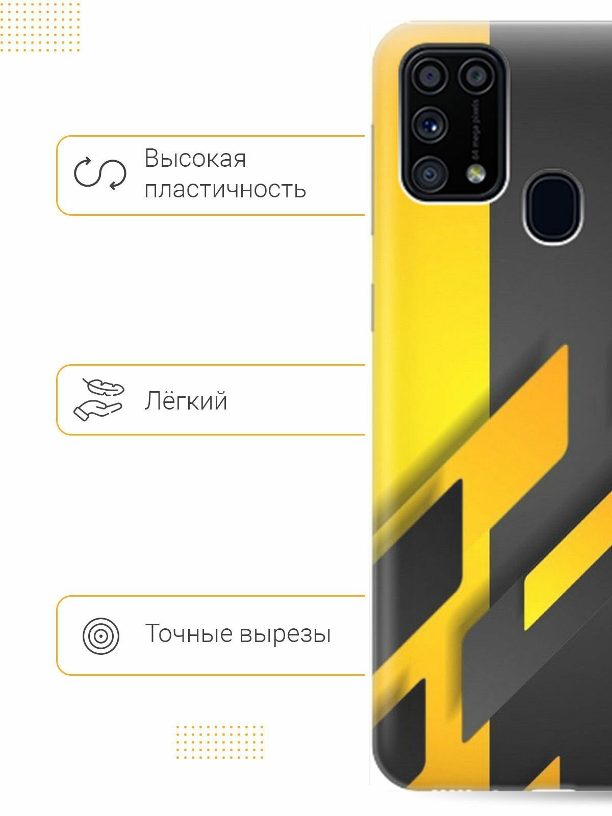 Ультратонкий силиконовый чехол-накладка для Samsung Galaxy M31 с принтом "Черно-желтая абстракция" информация: