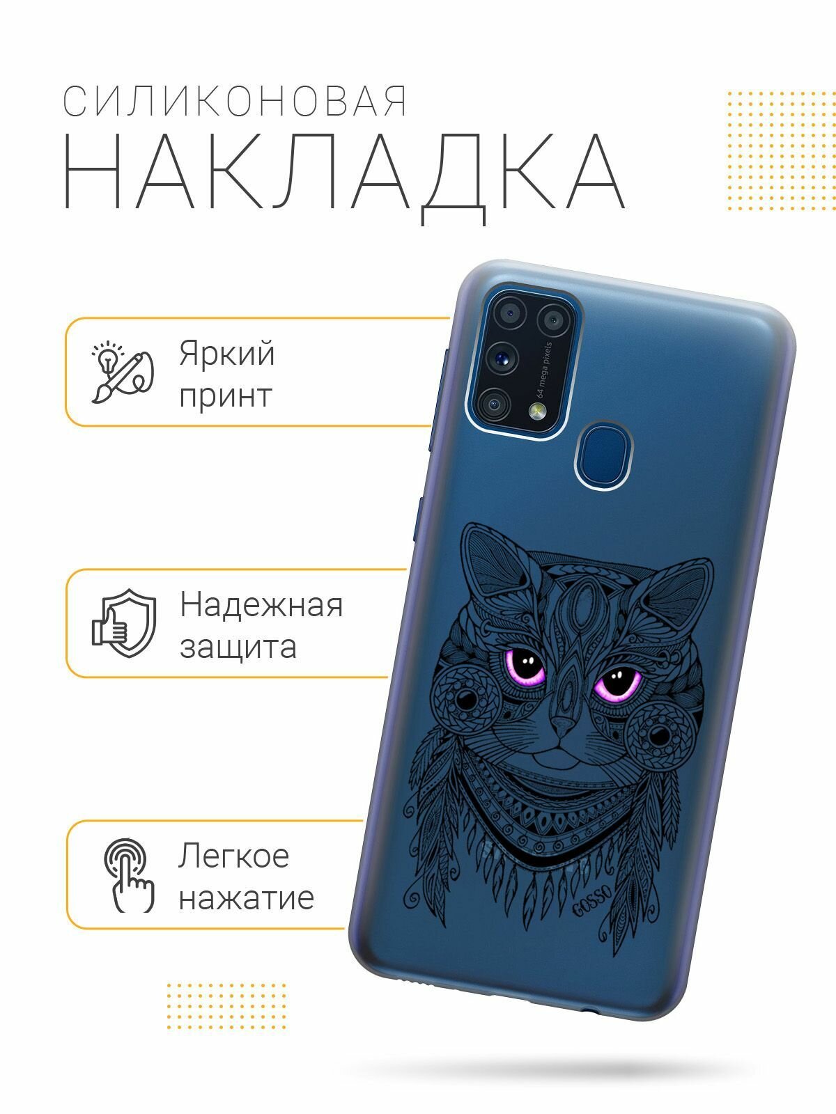 Ультратонкий силиконовый чехол-накладка Transparent для Samsung Galaxy M31 с 3D принтом "Shaman Cat" 474 ₽