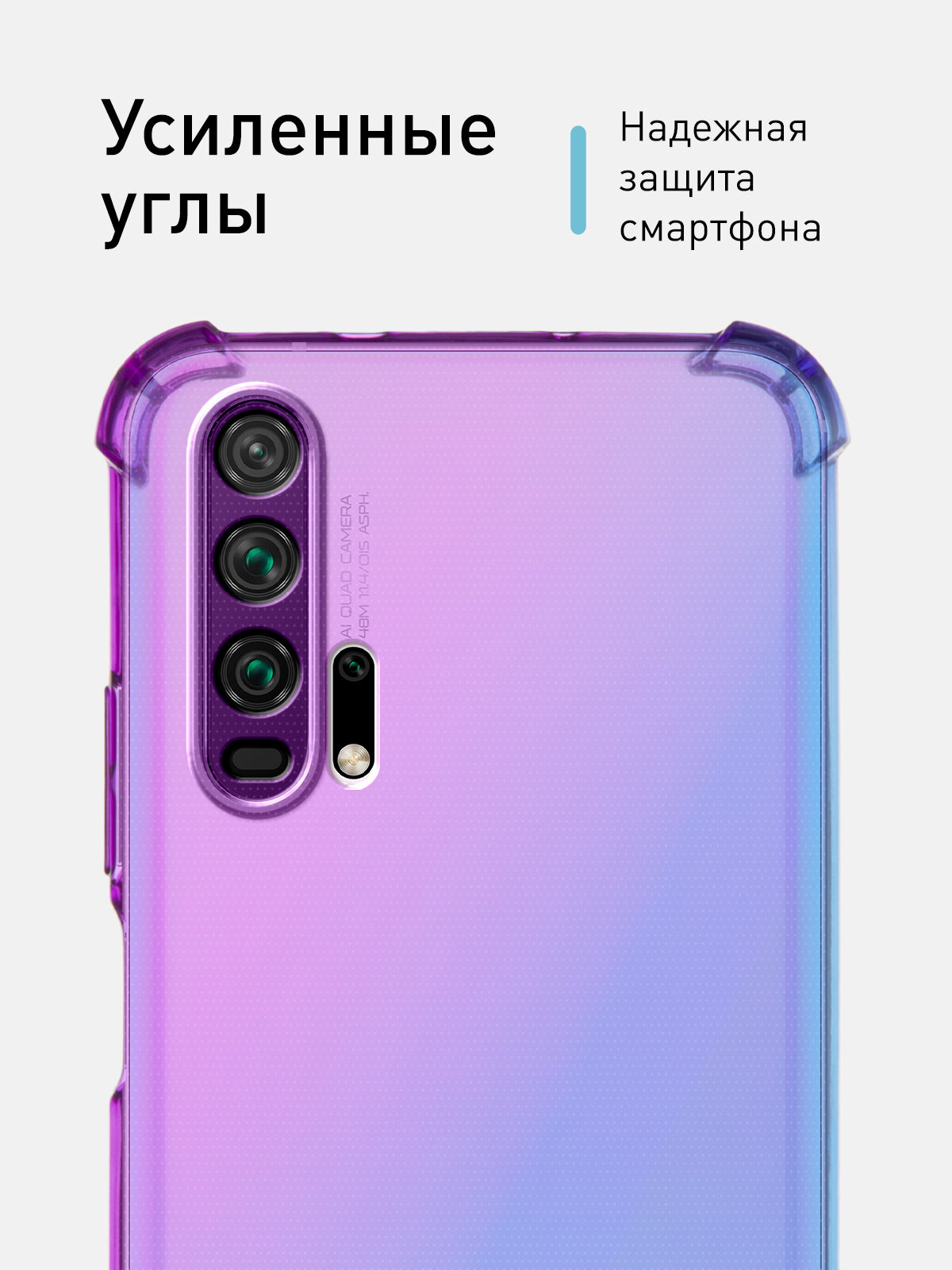 Противоударный чехол для Honor 20 Pro (Хонор 20 Про) силиконовый с усиленными углами, защита вокруг модуля камер, ROSCO прозрачный сиренево-голубой информация: