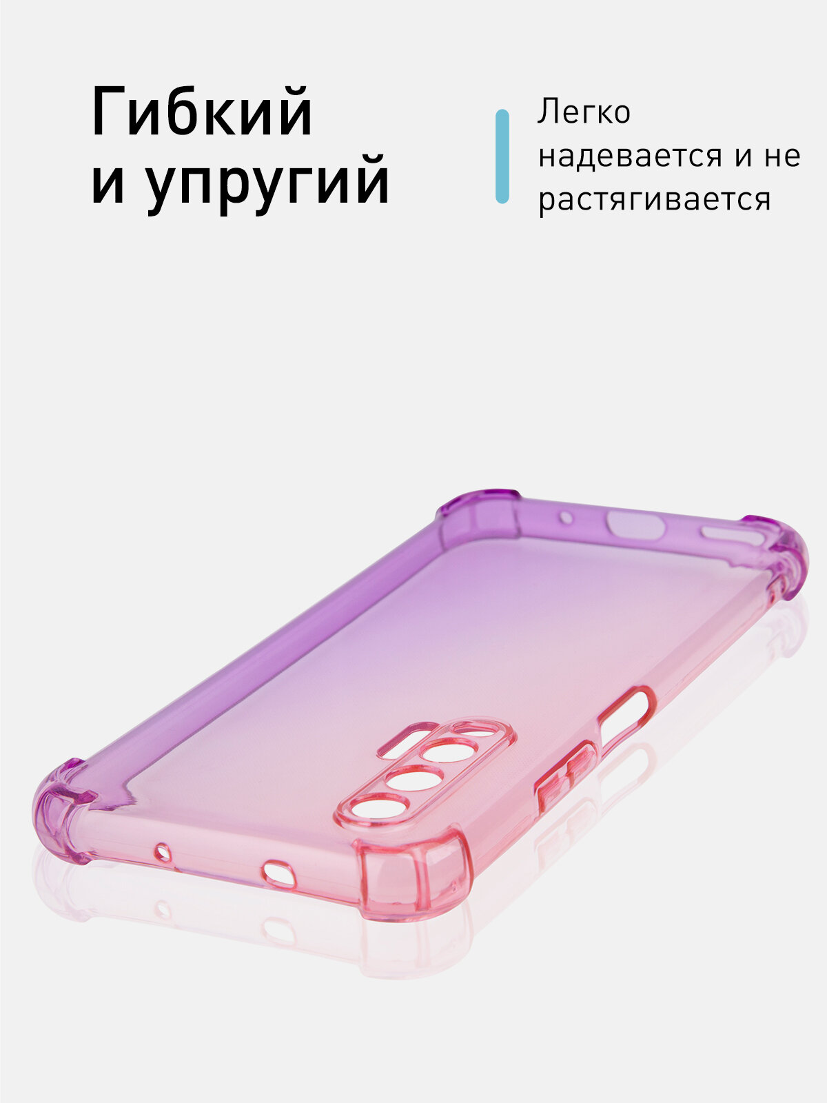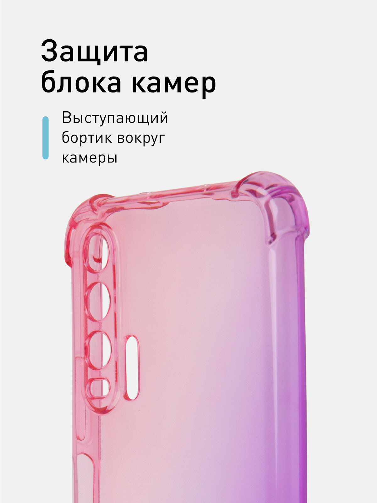 Противоударный чехол ROSCO для Honor 20 Pro (Хонор 20 Про) силиконовый с усиленными углами, защита вокруг блока камер, прозрачный фиолетово-розовый информация: