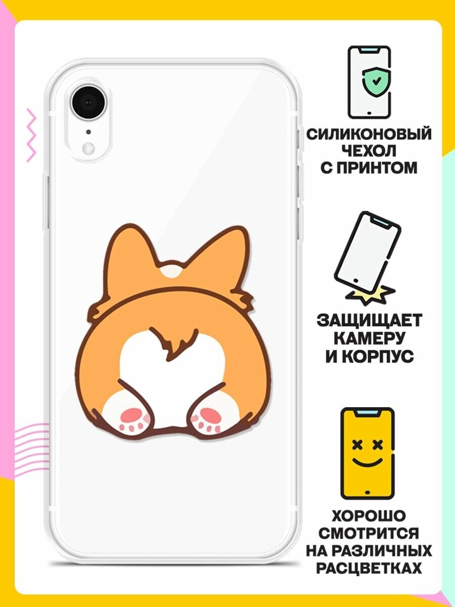 Силиконовый чехол Корги лежит на Apple iPhone Xr информация: