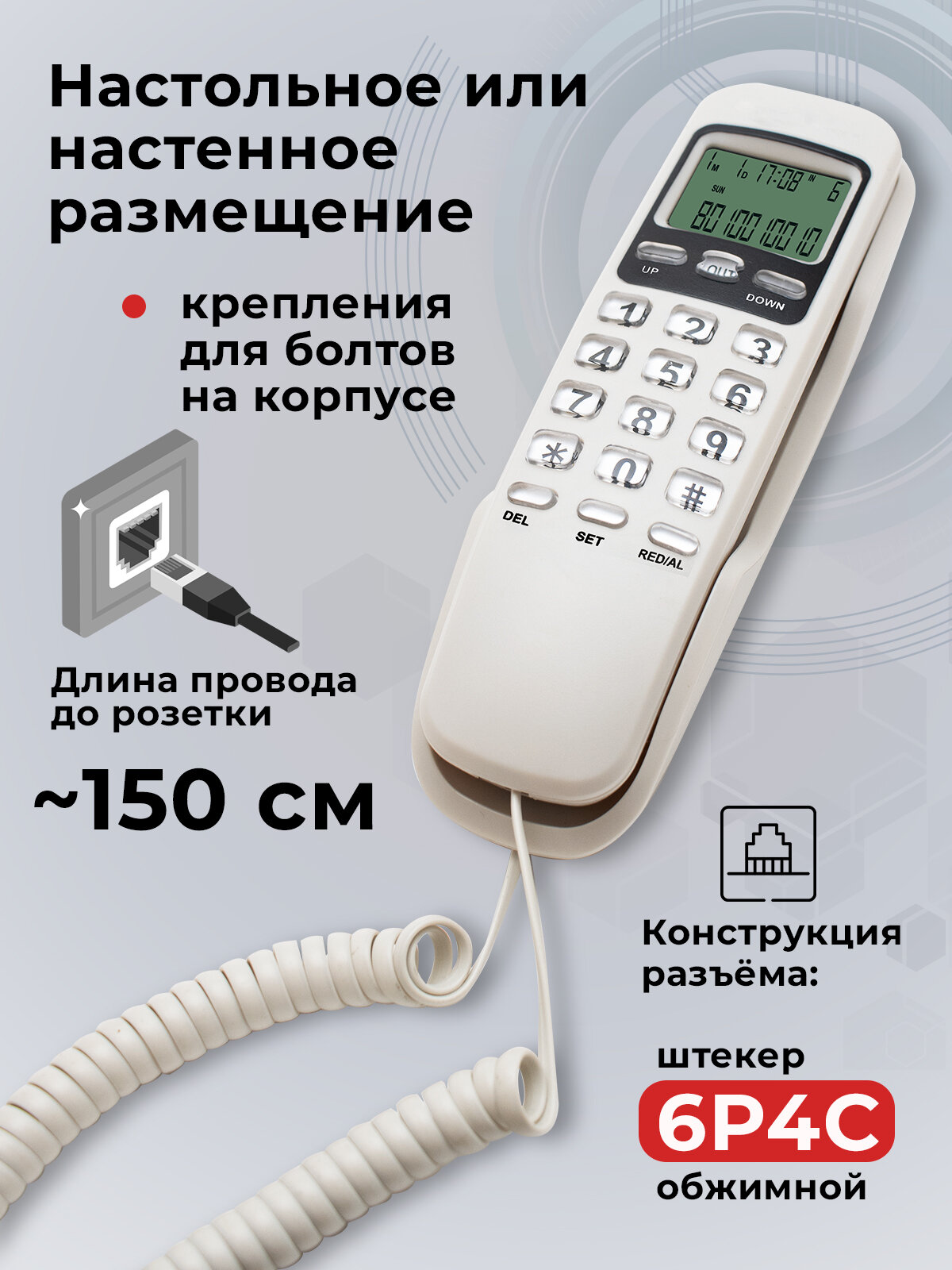 | Особенности | возможность настенной установки, повторный набор номера |
