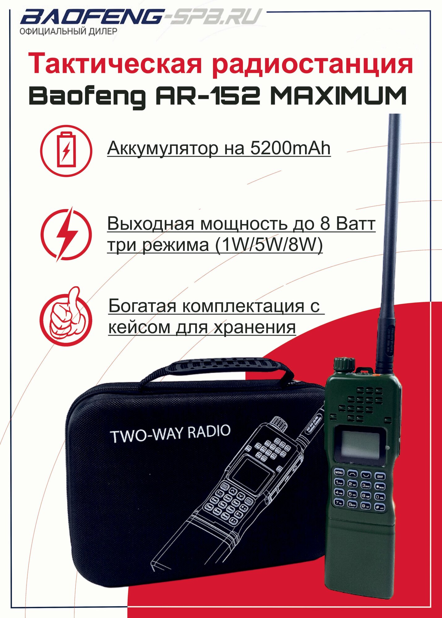 Мы выбрали 10 лучших цен на Рация портативная Baofeng AR-152 зеленая maximum. Перед тем как купить Рация портативная Baofeng AR-152 зеленая maximum посмотрите найденные предложения из Яндекс Маркета и других сайтов на основе XML фидов.
