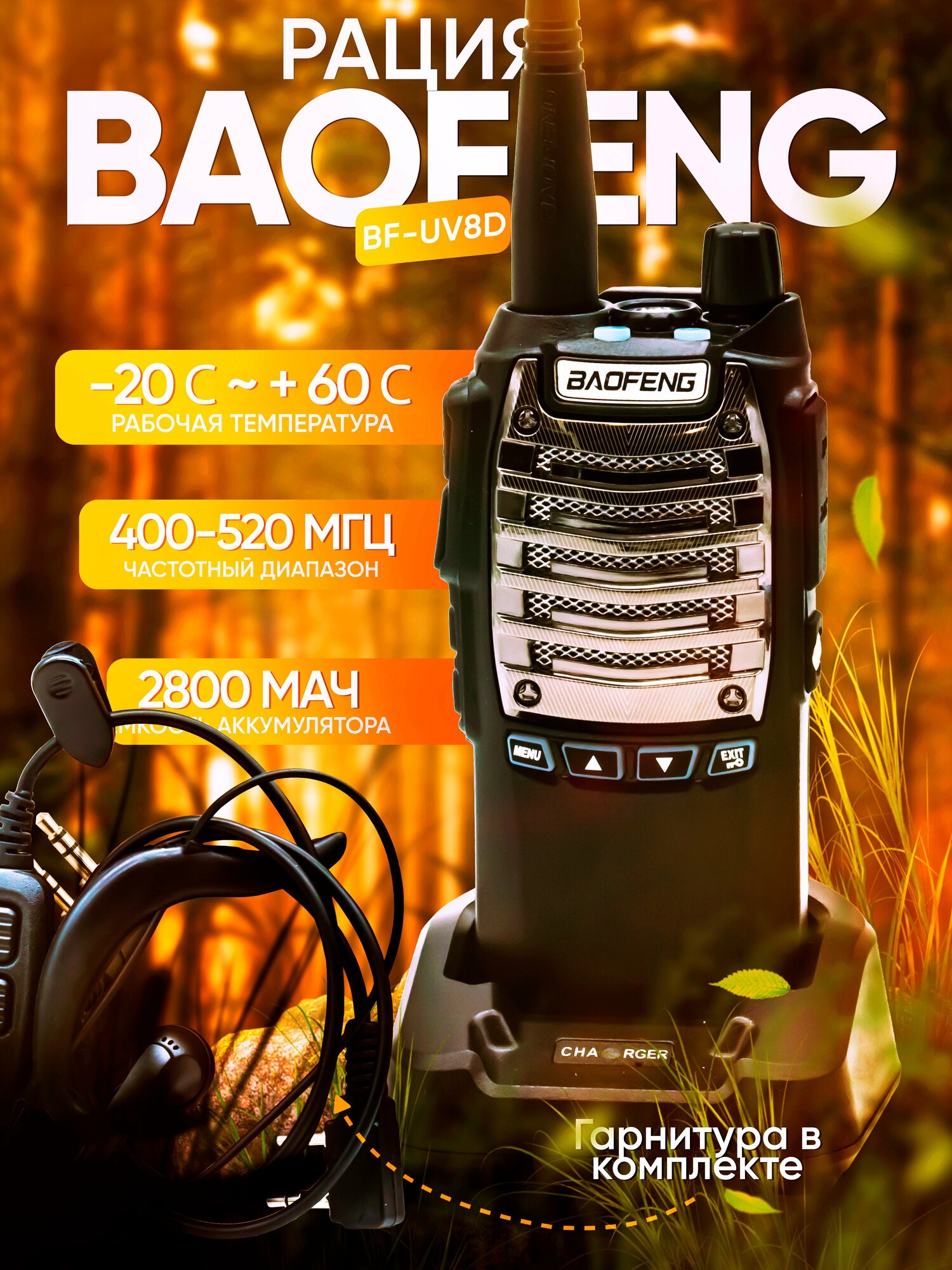 Отзывы на Рация Baofeng BF-UV8D (8W/ 400-480mhz/ 1800mah) с гарнитурой, black