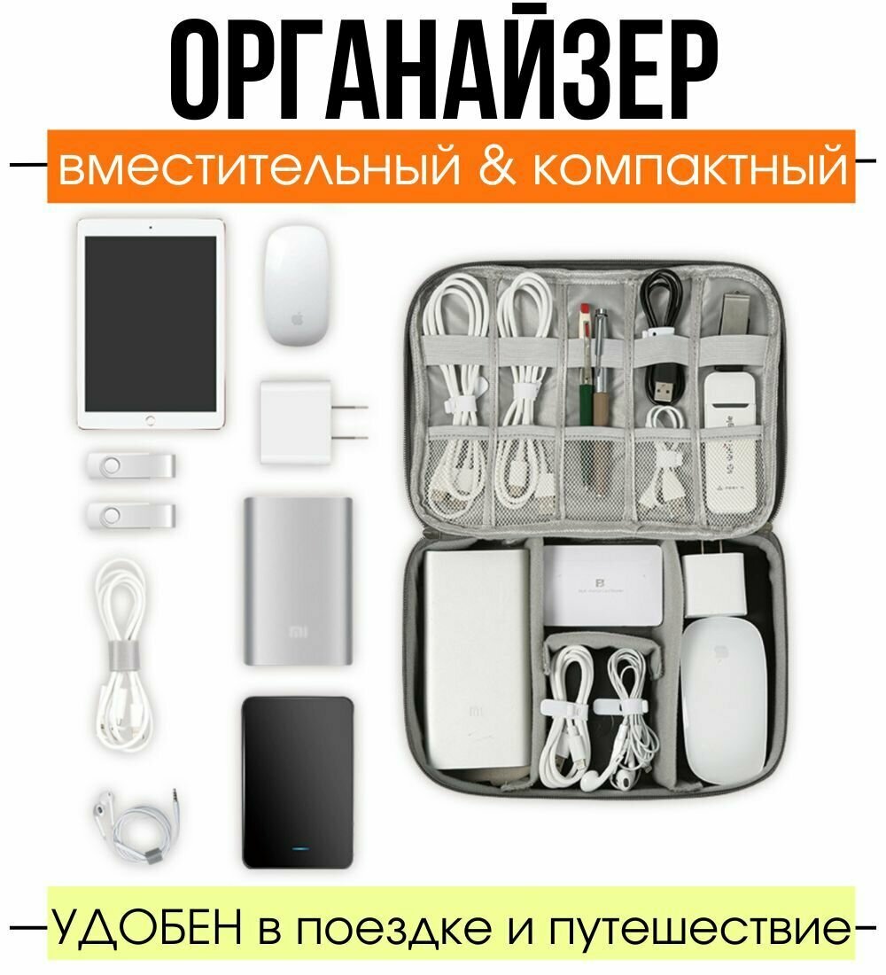 Отзывы на Органайзер для хранения проводов и косметики / подходит для фото рюкзака зарядок, usb, планшета / черный