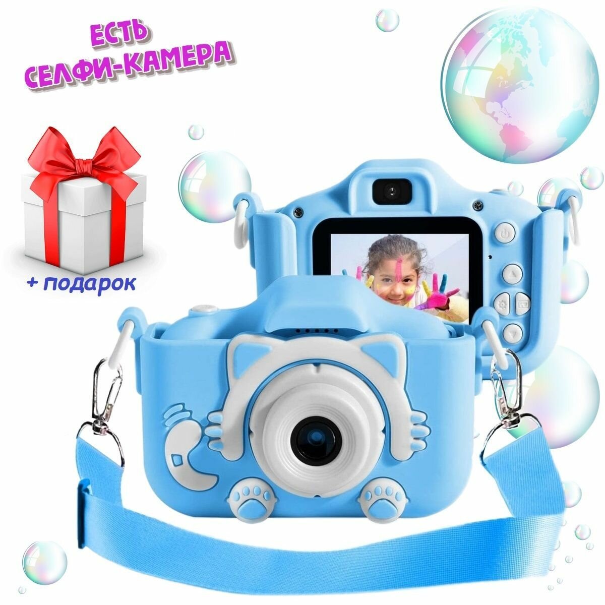 Отзывы на Детский фотоаппарат голубой Котик с селфи-камерой, играми + подарок