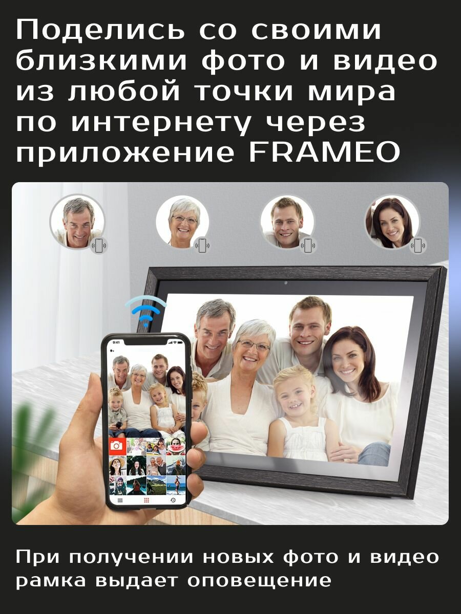 Умная Цифровая фоторамка FRAMEO, экран 18.5 дюйм. Цвет: черный TOUCH SCREEN SMART WI-FI Photo Frame Сенсорный экран, фото, видео и звук. ВАЙ-ФАЙ. 1280x800 пикселей информация: