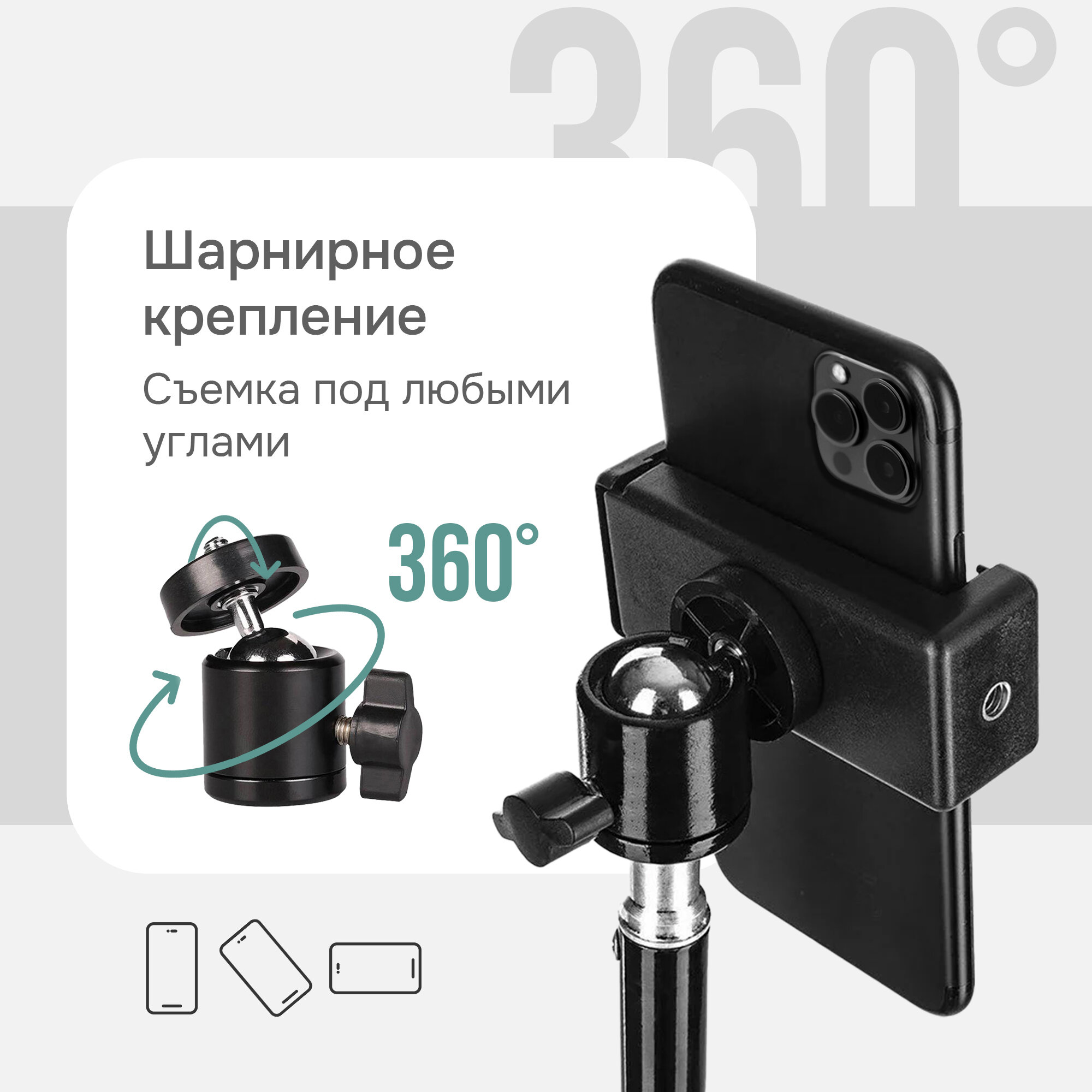 10 цен на Штатив JBH 2 м в комплекте держателем для телефона и шаровой головкой