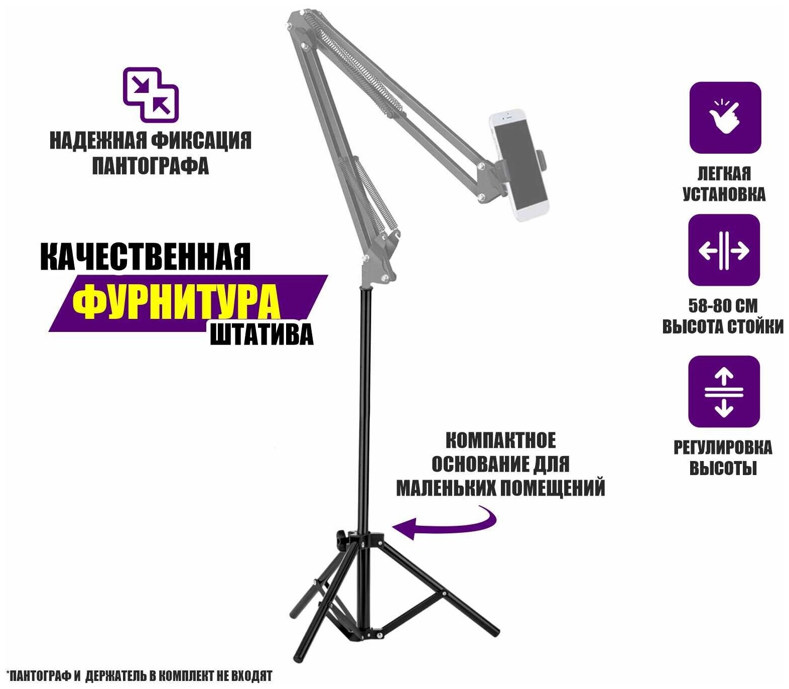 Напольная стойка JBH-UW для пантографа (вместо струбцины) для съемки смартфоном информация: