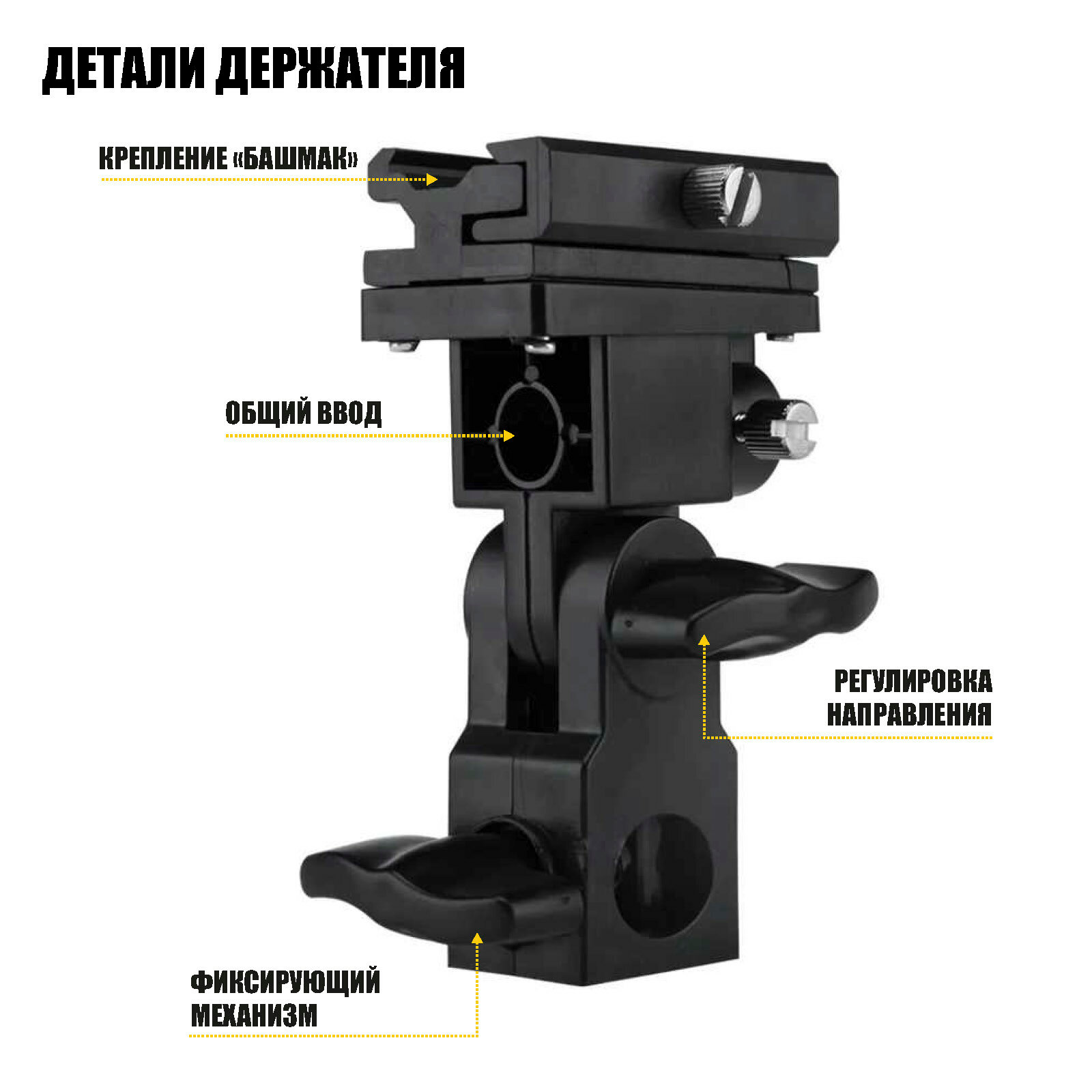 | Дополнительная информация | Фиксатор для зонта и вспышки изготовлен из высококачественных материалов и имеет надежные прижимные детали, что позволяет поддерживать любое положение фотозонта и фотовспышки. |