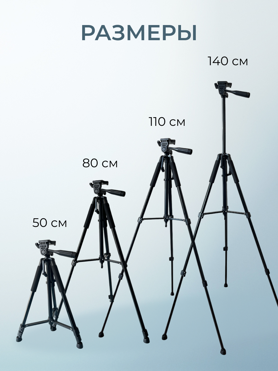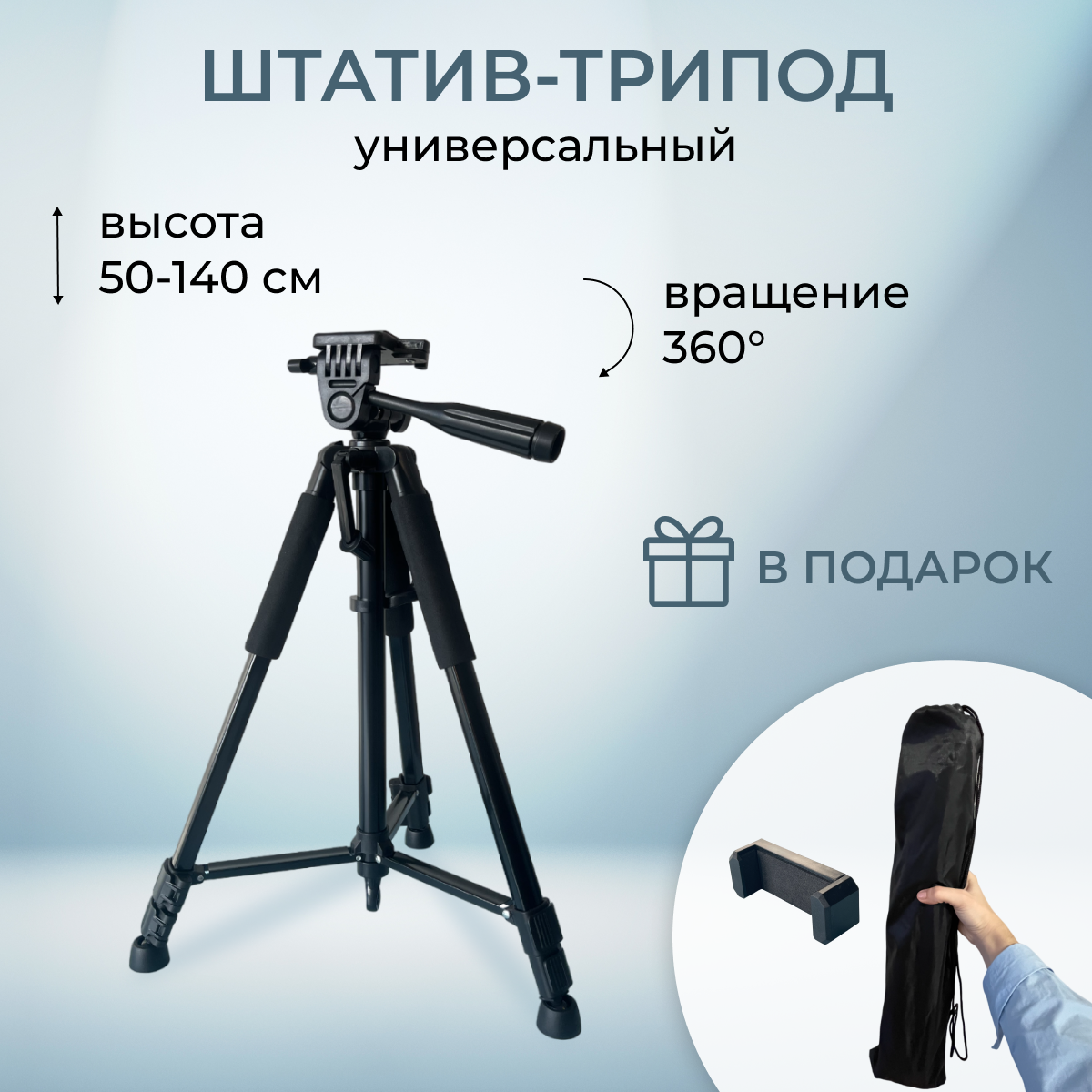 10 цен на Штатив трипод для фотоаппарата, телефона, смартфона, камеры универсальный, напольный 50-140 см с держателем для телефона