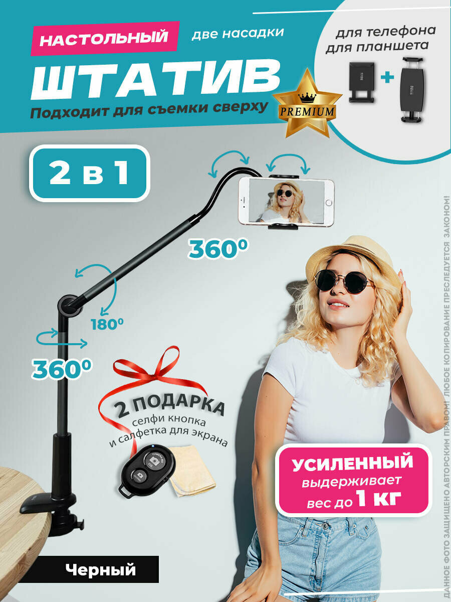 10 цен на Штатив для телефона и планшета. Настольный, усиленный. Черный