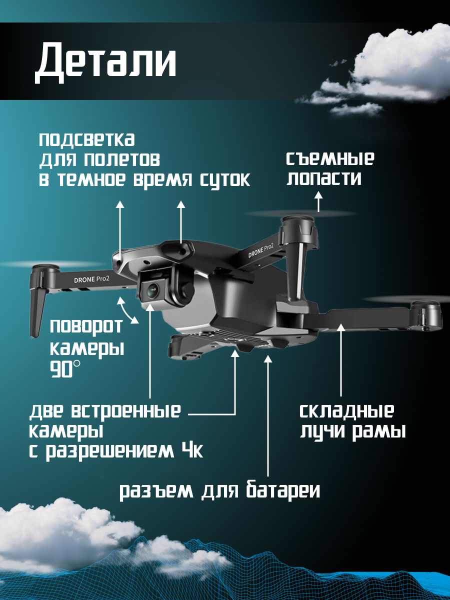 | Особенности | защита винтов / пульт управления в комплекте / складная конструкция |