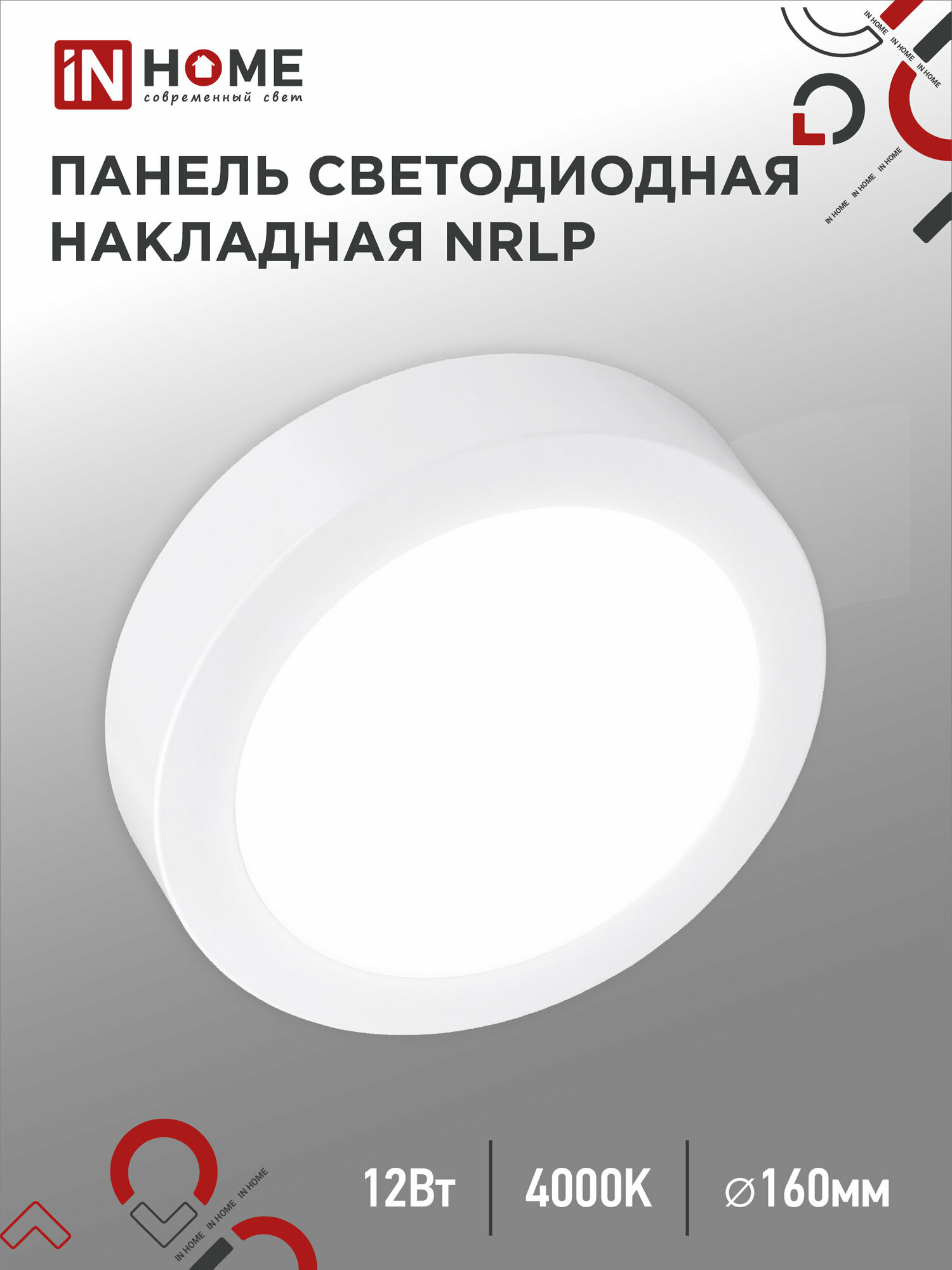 Отзывы на Светодиодный светильник накладной, панель круглая NRLP 12Вт 4000К 840Лм 160мм белая IP40 IN HOME