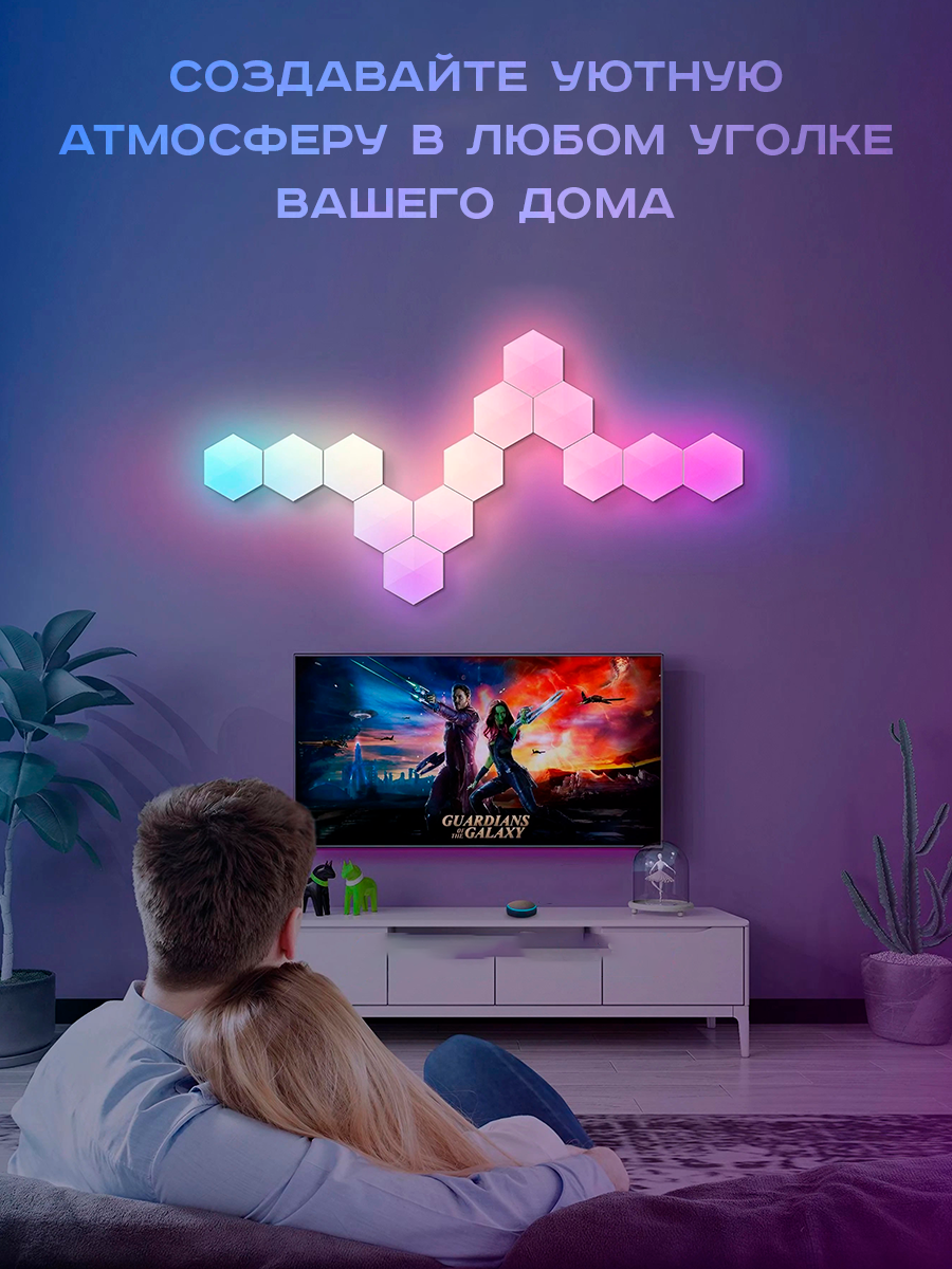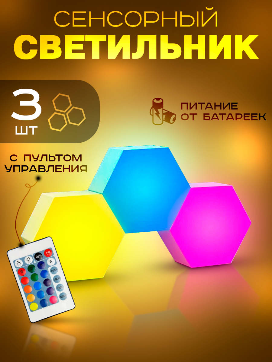 Отзывы на Светильник сенсорный Hexagon Соты с пультом RGB Light 85х74х27мм 3 шт