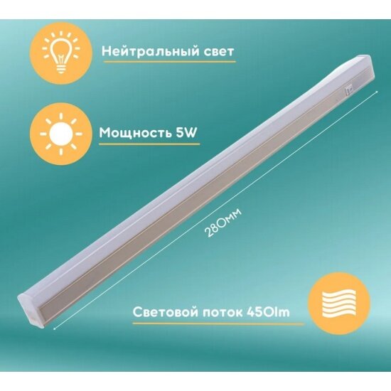 Светильник светодиодный 20LED LWL-2013-5CL линейный 5Вт 4000К IP20 300лм 310мм 220В, ULTRAFLASH 12326 (1 шт.)