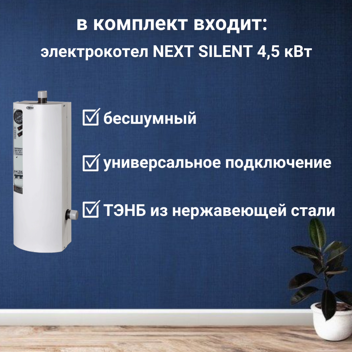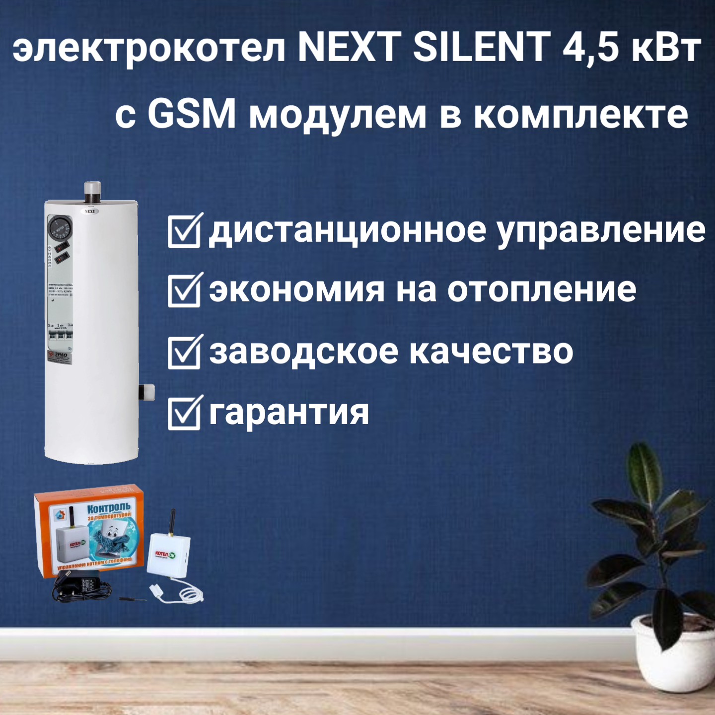 Электрический котел эрдо NEXT SILENT 4,5 кВт с GSM модулем в комплекте информация:
