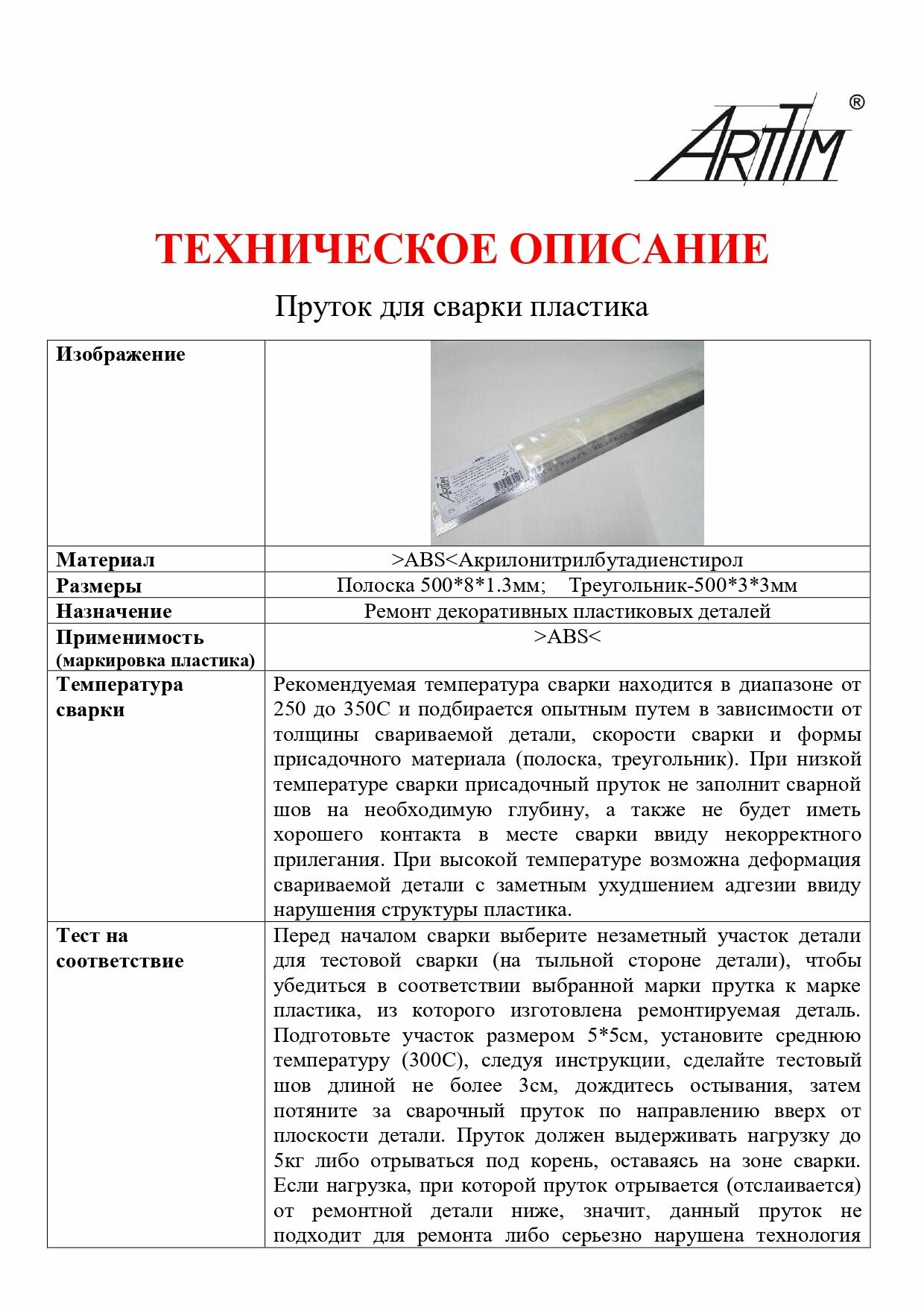 Отзывы на Сварочный пруток пластиковый, плоский, АБС (ABS), 10 штук, 500х6х1,5 мм, ArtTim