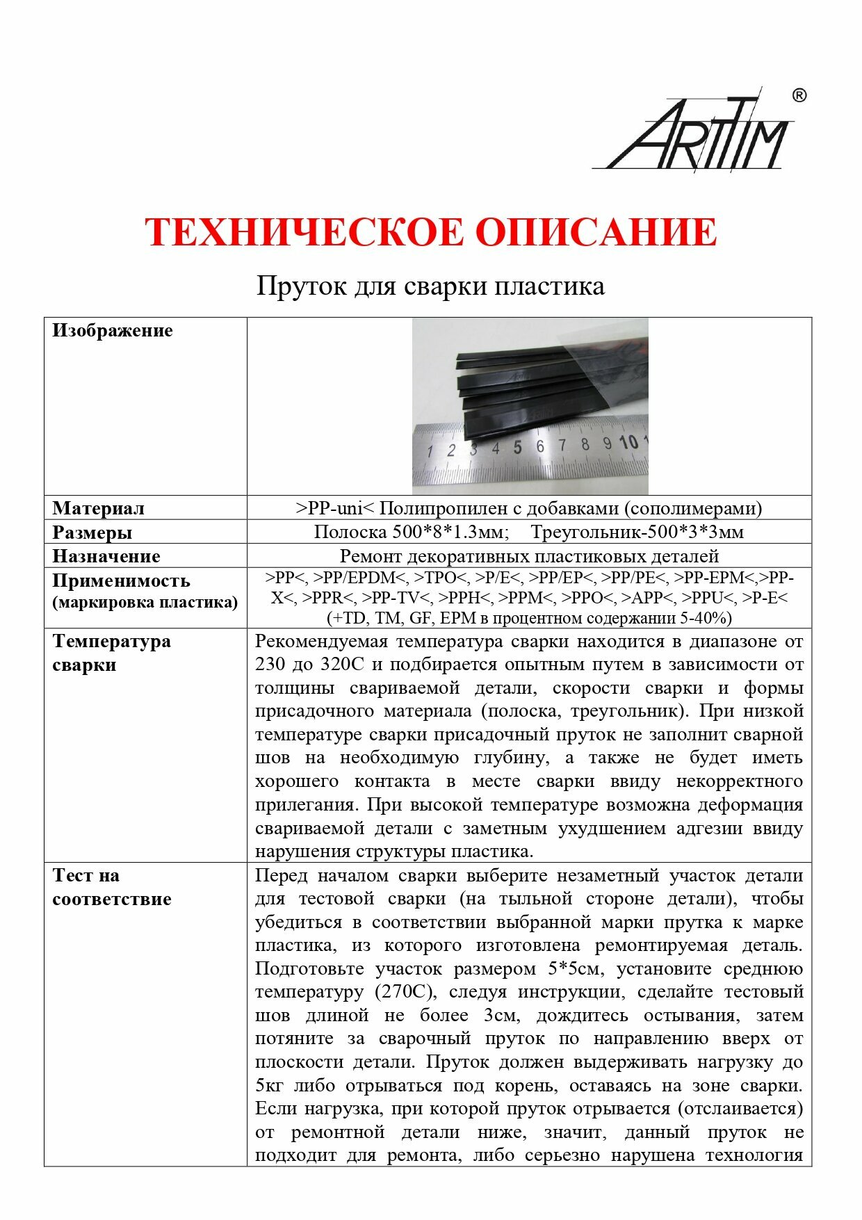 Отзывы на Сварочный пруток пластиковый, треугольный, ПП (РР-uni), (PP-EPDM), полипропиленовый, 10 штук, 500х3х3 мм, ArtTim