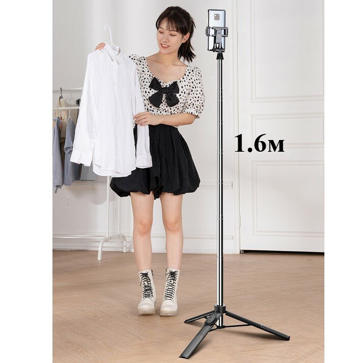 Монопод-трипод для смартфона с пультом Bluetooth, штатив для телефона xiaomi, селфи палка для iphone, монопод трипод, тринога для телефона, черный информация: