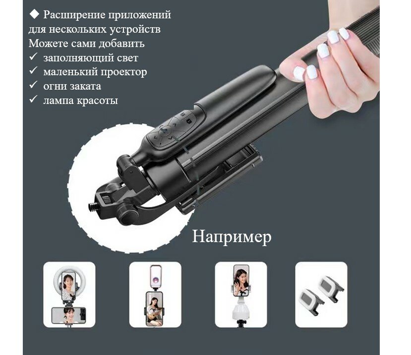 10 цен на Монопод-трипод для смартфона с пультом Bluetooth, штатив для телефона xiaomi, селфи палка для iphone, монопод трипод, тринога для телефона, черный