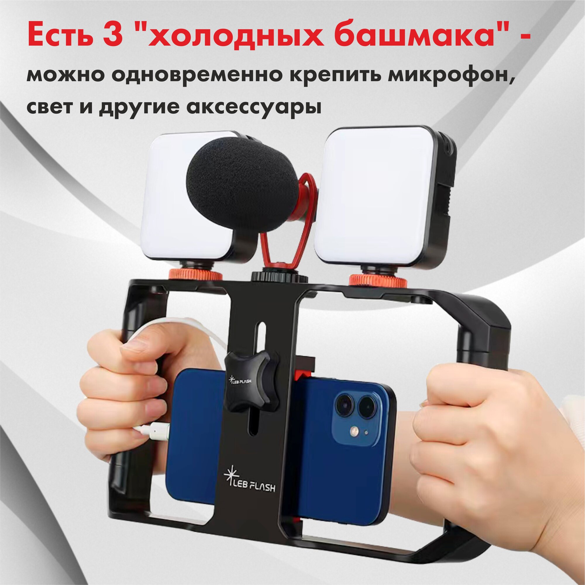 Клетка держатель для телефона, стабилизатор, крепление на штатив раздвигающееся для монопода, трипода, поворотный держатель информация: