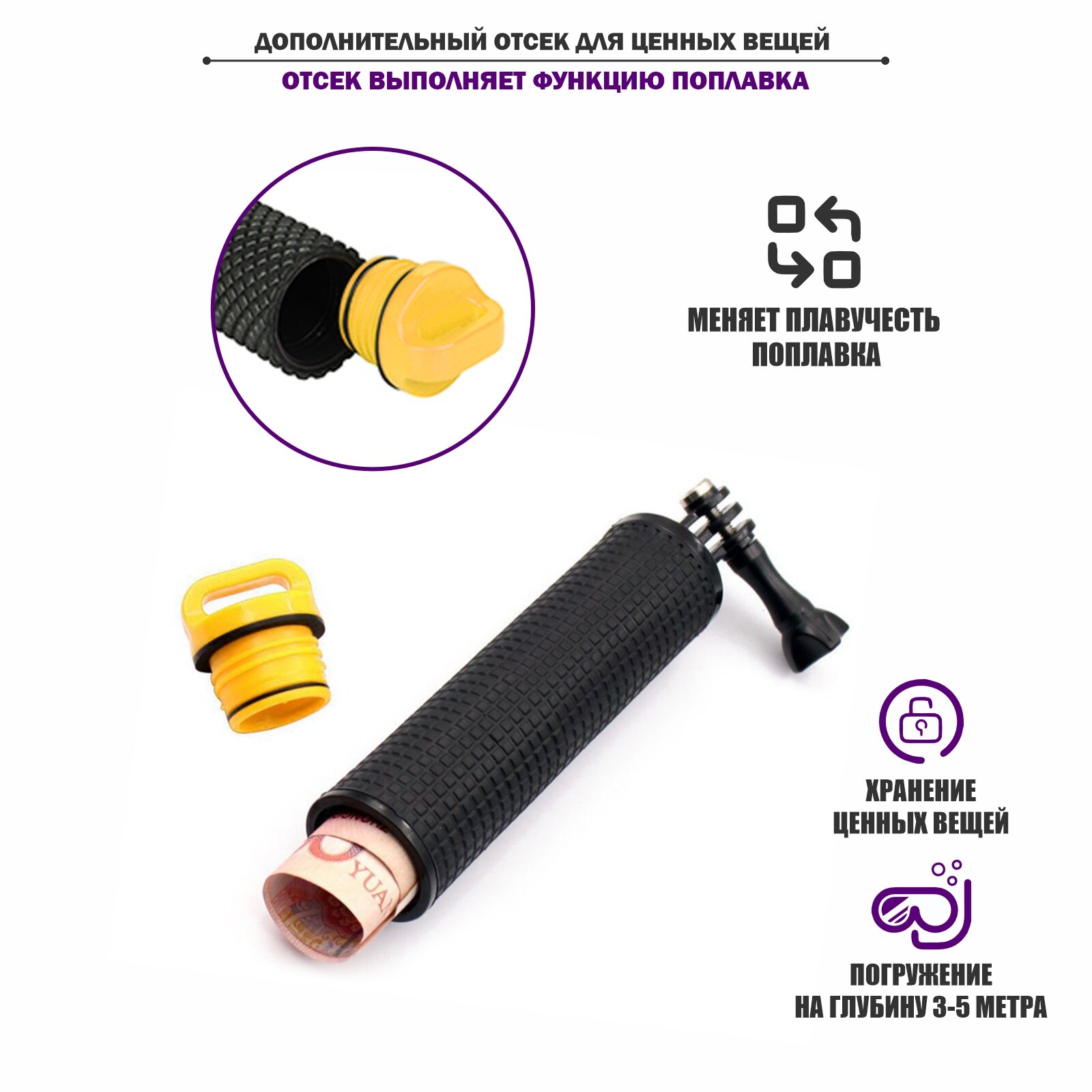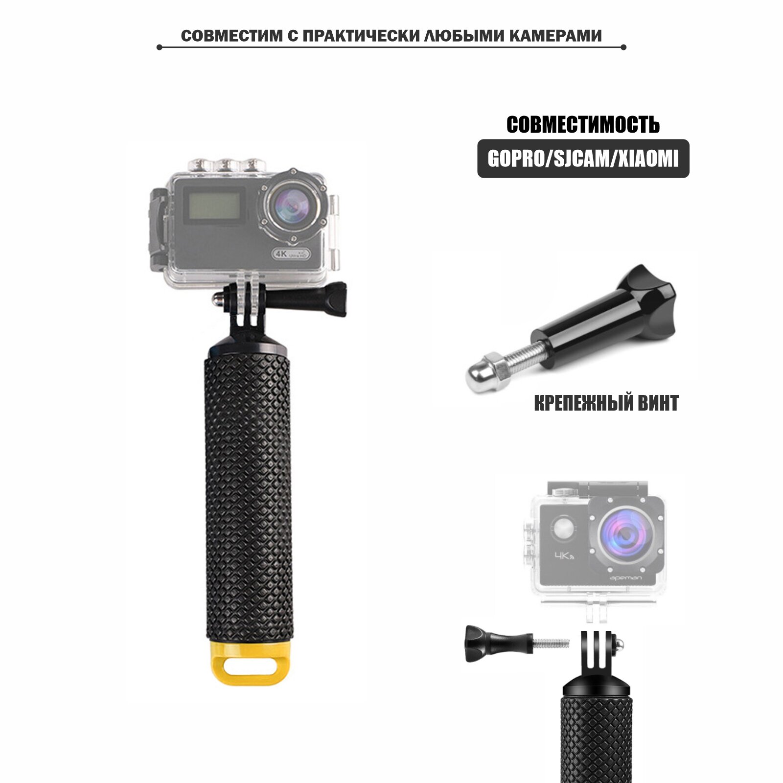 Поплавок-монопод для экшн камеры с крепежным винтом, желто-черный информация: