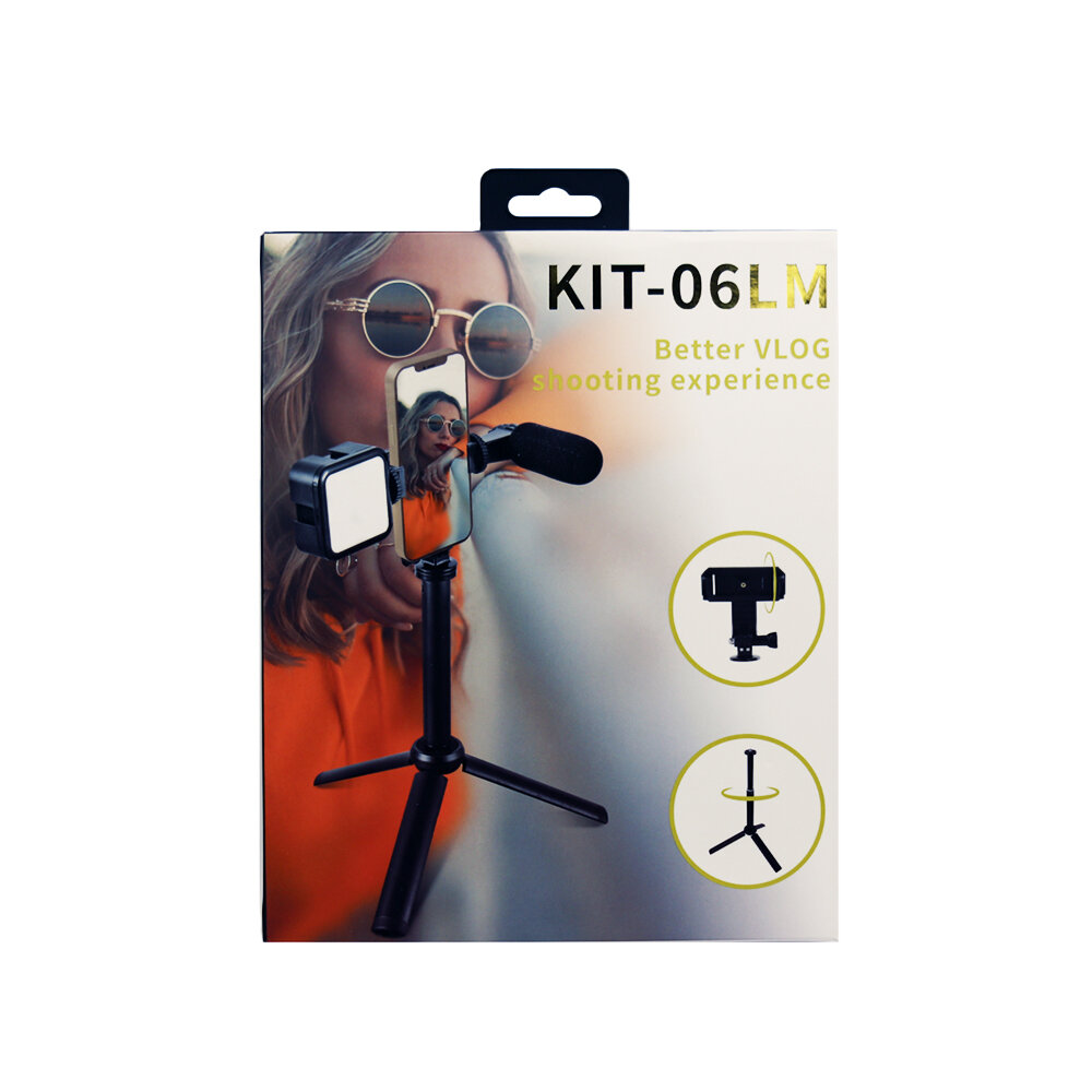10 цен на Монопод-трипод с лампой и микрофоном для блогеров KIT-06LM (черный)
